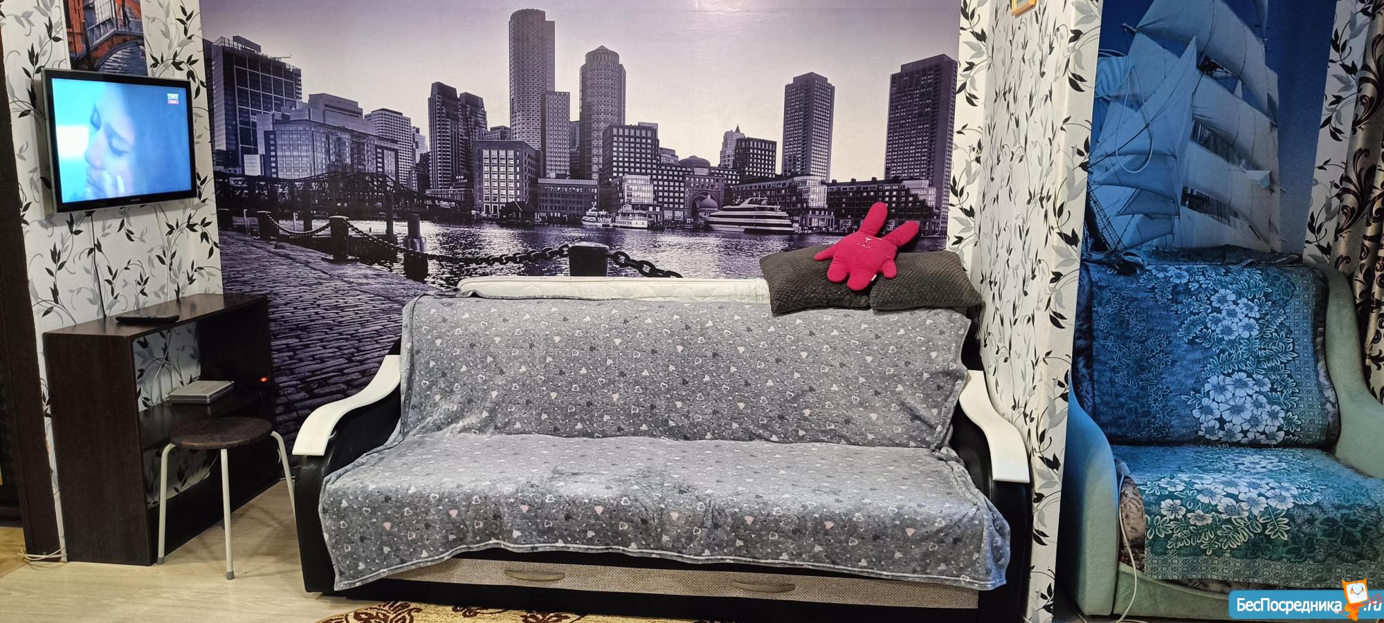 Сдам НА КРАТКОСРОЧНЫЙ ПЕРИОД (1-2 месяца) квартиру-студию 27 кв.м. В квартире также имеется холодильник и стиральная машина (нет на фото). Арендная плата + свет, вода