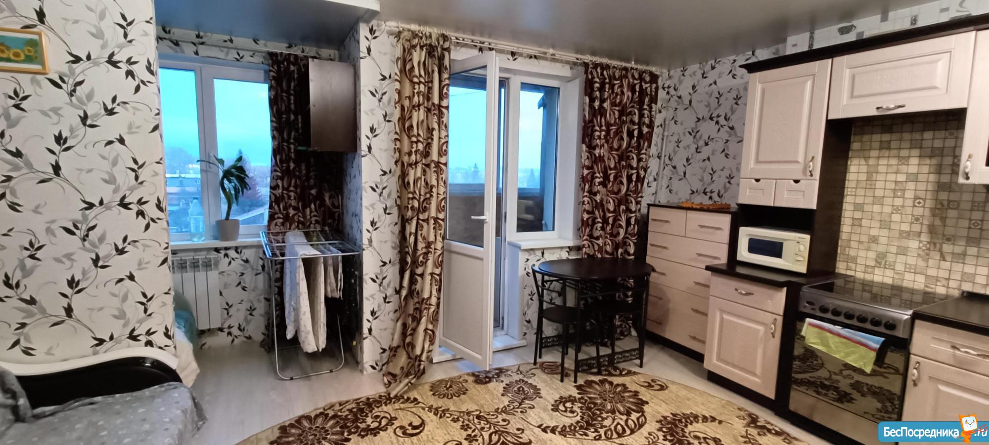 Сдам уютную квартиру-студию на длительный срок, ранее не сдавалась! Просторная, светлая, застекленная лоджия. Свежий ремонт, новая мебель и техника (стиральная машинка, холодильник, электроплита), микроволновая печь; при необходимости предоставлю спальное место.Сан.узел совмещен. Вся необходимая инфраструктура в шаговой доступности, удобная транспортная развязка. Отличный вариант для студентов, молодой пары. Состояние-заходи и живи! Арендная плата 17000 руб.+все коммунальные платежи (по квитанции и по счётчикам)