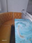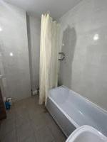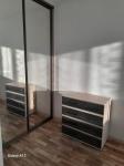В квартире стоит большой диван (раскладывается), стол, стулья, телевизор, холодильник, посудомоечная машина, стиральная машина, водонагреватель, большая кровать 120×200, шкаф-купе.
