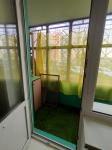 Вместительный тамбур на одну квартиру. Балкон застеклен, пол застелен искусственной травой.