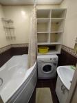 Имеется всё для комфортного проживания: места для хранения, 4 спальных места (двухспальная кровать, диван-книжка), кухонный гарнитур с встроенным духовым шкафом, сенсорная электроплита, микроволновка, холодильник, стиральная машина, водонагреватель, тёплый пол в коридоре.