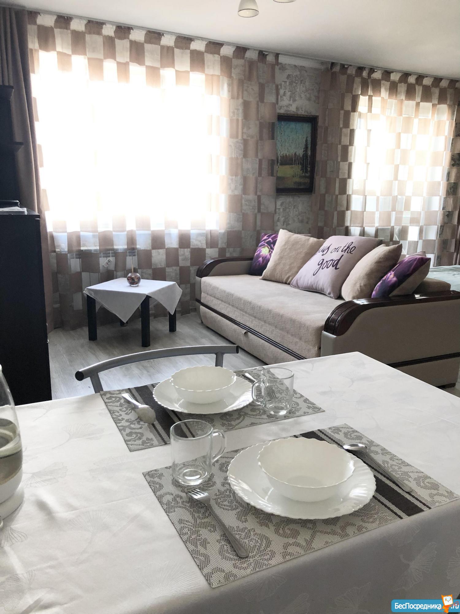 Евро двушка , сделанная студией. Дому 4 года. На длительный срок , идеально чистую , светлую , тёплую квартиру-студию. Отмывать ничего не нужно, заходи и живи. Есть все: мебель (4 спальных места), сушка, утюг, гладильная доска, чайник, микроволновка, посуда, полотенца и постельное белье, вентилятор. Оплата плюс свет, вода по счётчикам. Предоплата (аванс) 7000 руб. на оплату коммунальных, досрочный съезд и уборку после, если самим будет не охота. Задаток возвращается.!!! Если на 1-2 месяца, то 24000 руб.