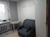 Комната в общежитии в секции на 4 комнаты, в районе площади Октября в нормальном состоянии, обои наклеены свежие. В комнате натяжной потолок, пластиковое окно. Вода (раковина) в комнате. Туалет и душ на этаже, закрываются на ключ.