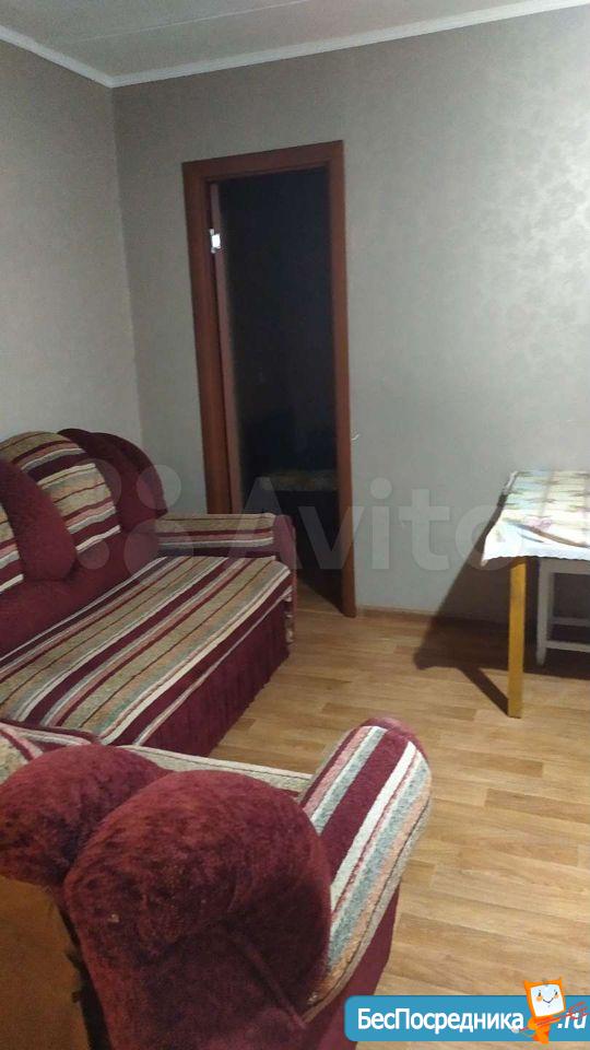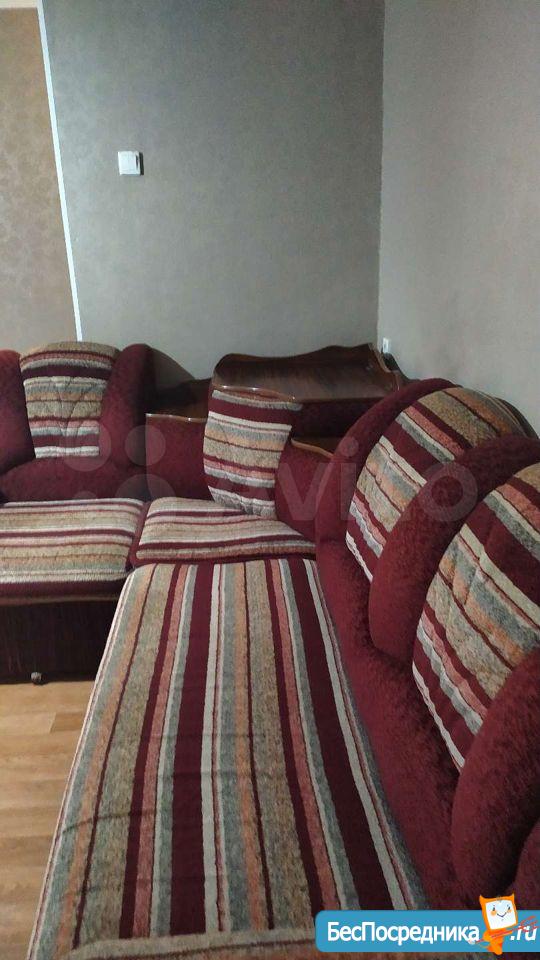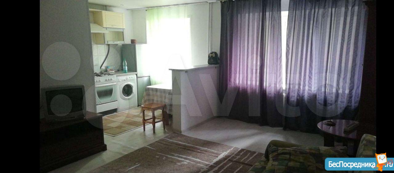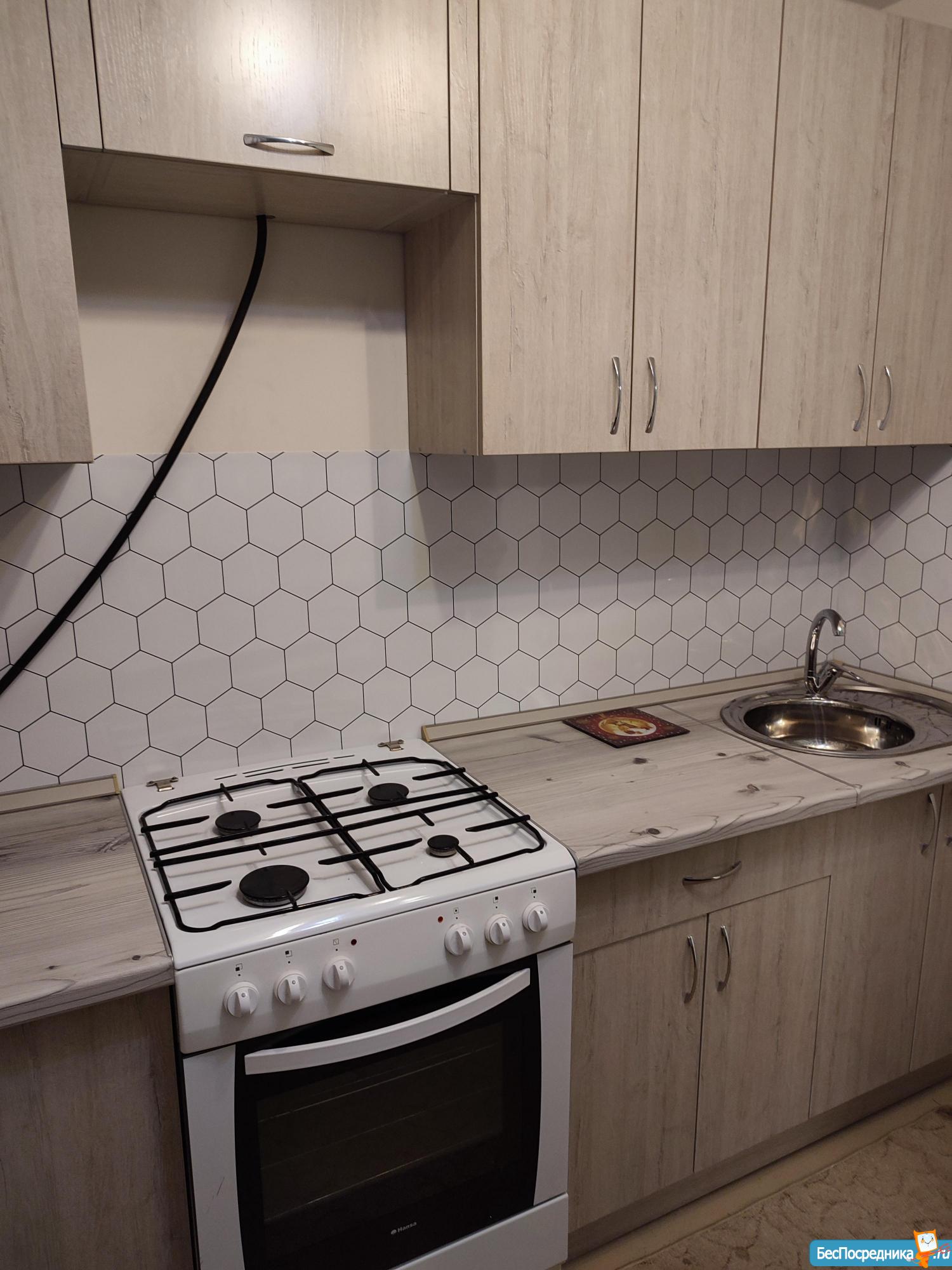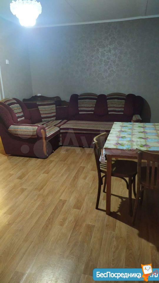 на длительный срок мебелированная:диван , шкаф, кухонный гарнитур новый, плита, холодильник, стиральная машина.