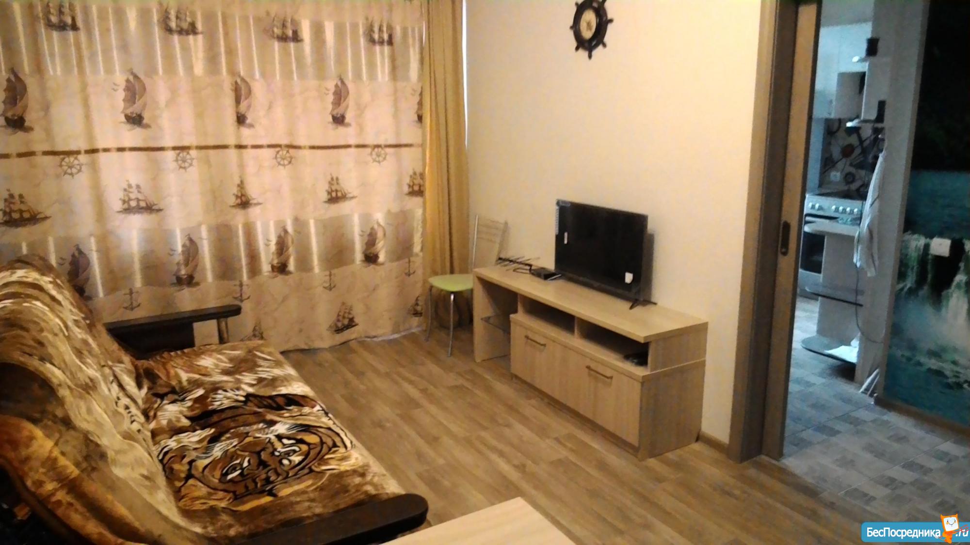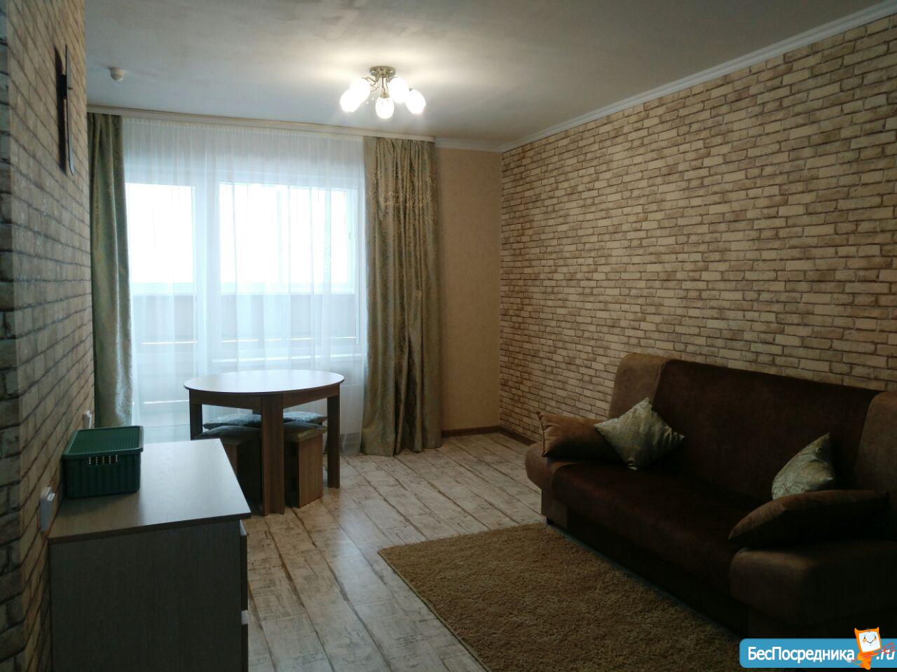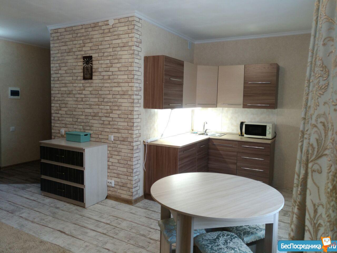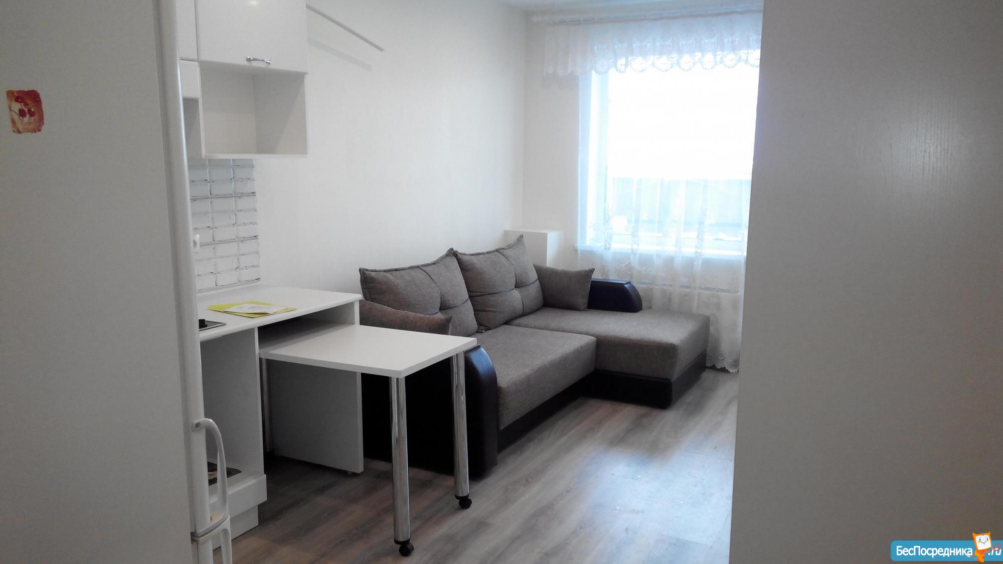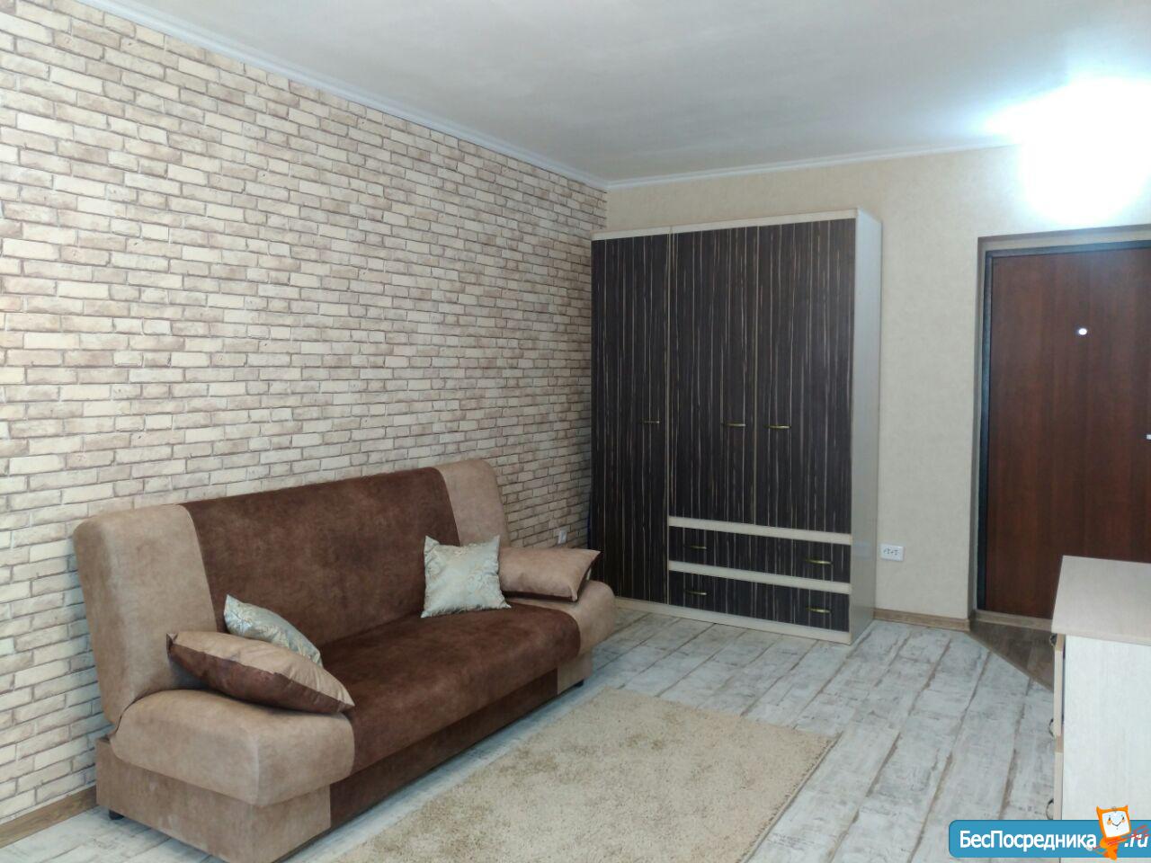 Сдается квартира-студия (43.5 кв.м) на длительный срок, с хорошим ремонтом, застекленный балкон, окна выходят во двор, Рядом автобусная остановка, магазины, место для авто во дворе.