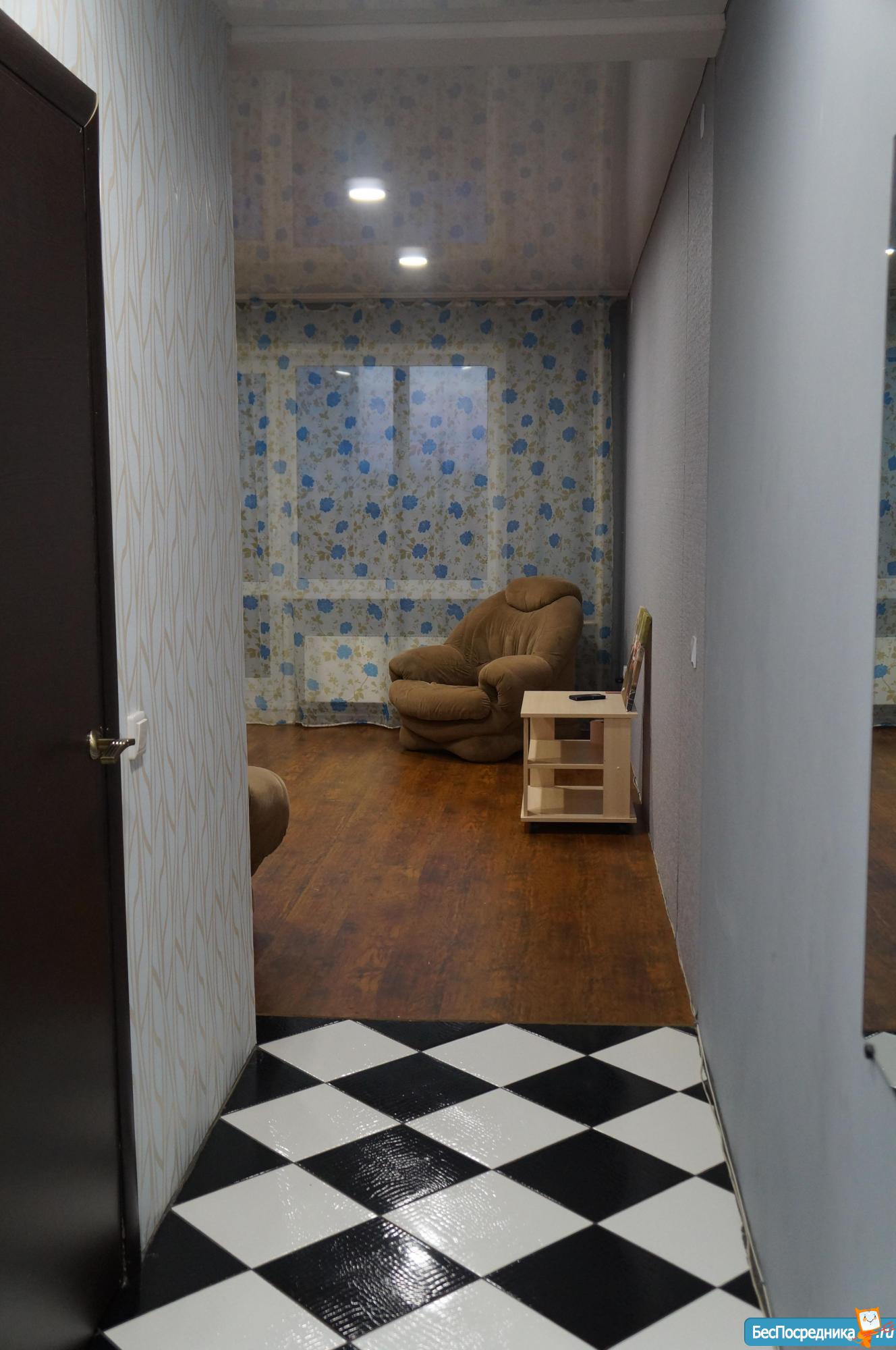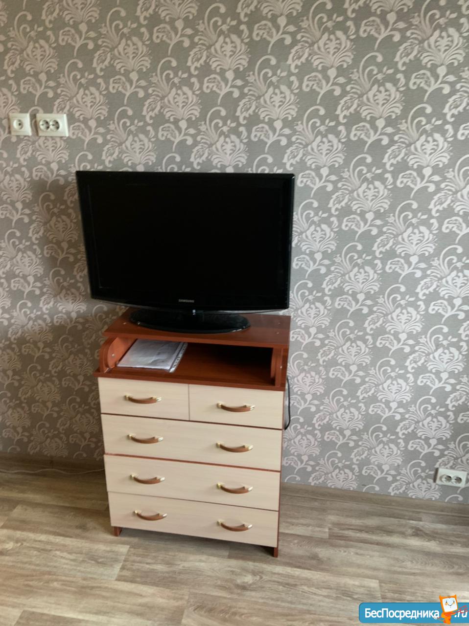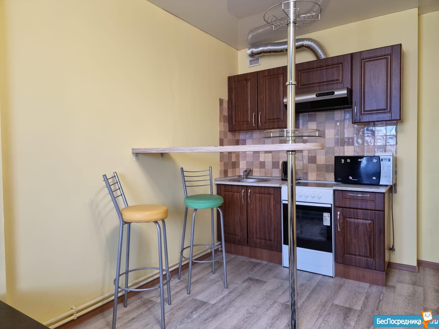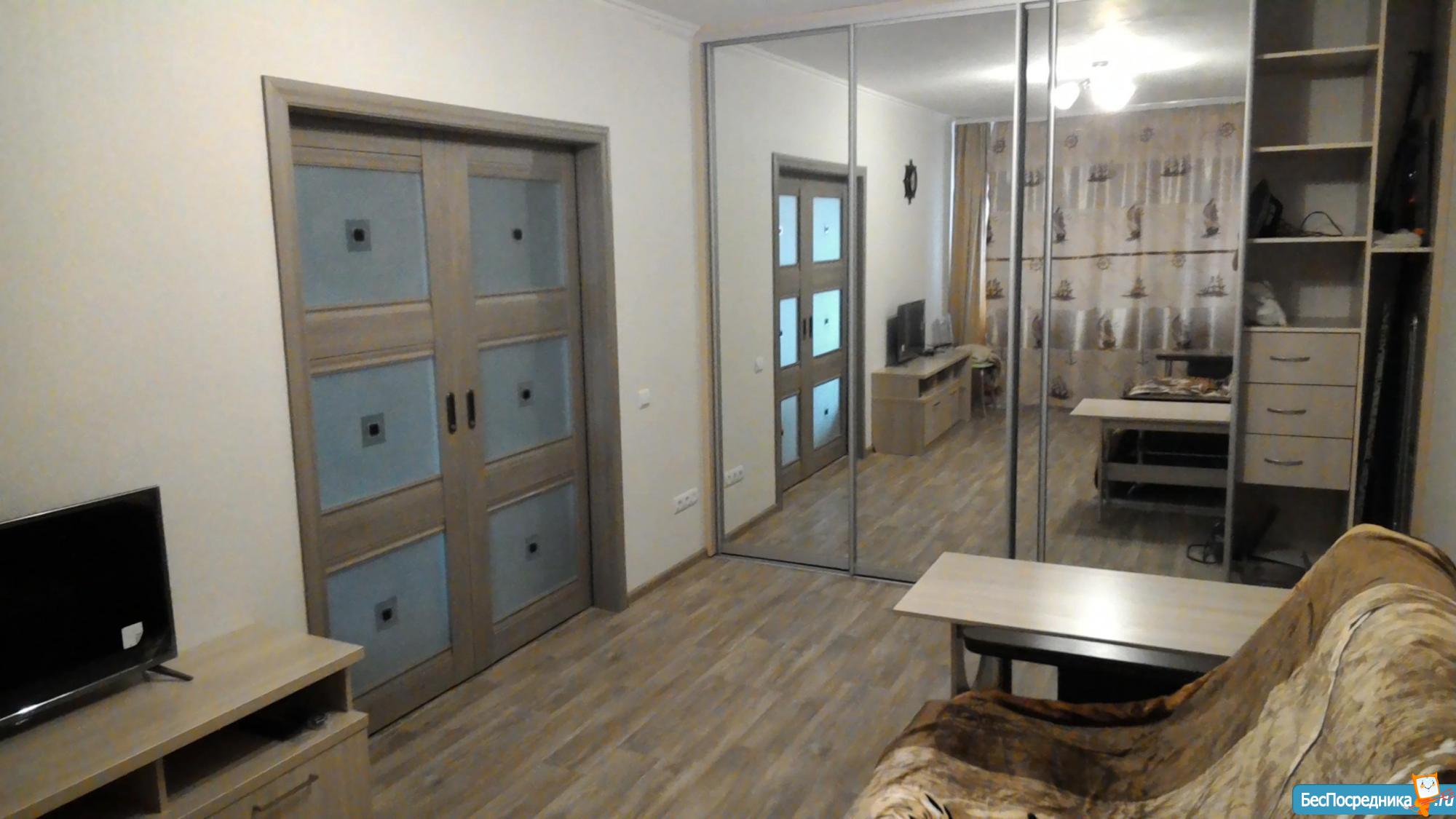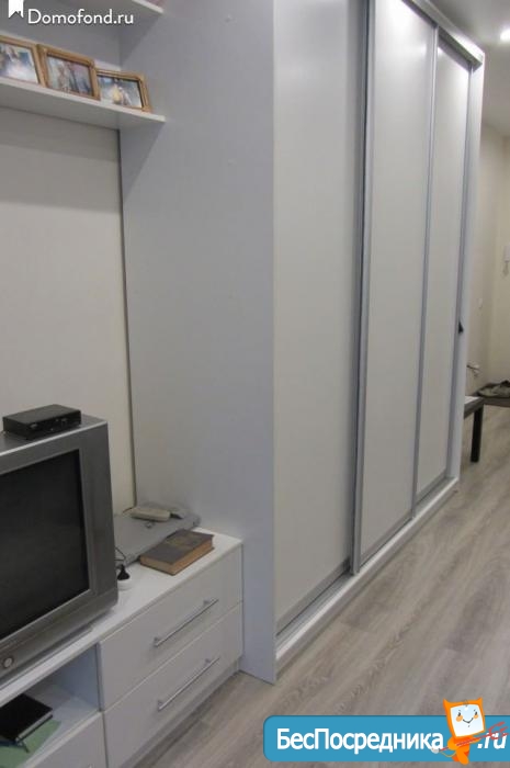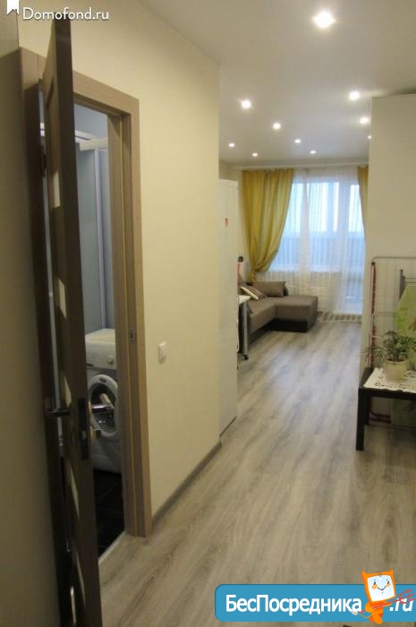 Сдается квартира-студия (43.5 кв.м) на длительный срок, с хорошим ремонтом, застекленный балкон, окна выходят во двор, Рядом автобусная остановка, магазины, место для авто во дворе.