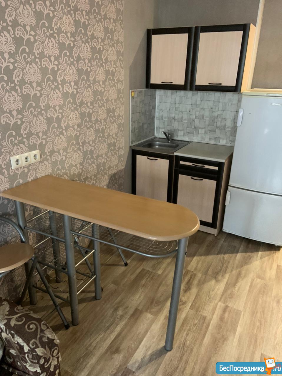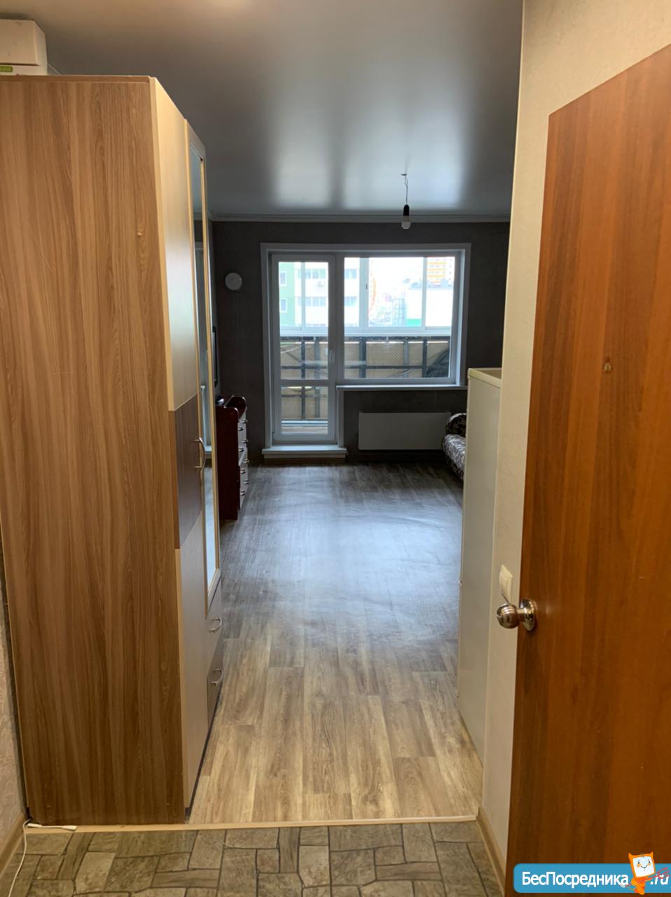 Сдаётся студия ремонтом и мебелью НА ДЛИТЕЛЬНЫЙ СРОК. Есть всё необходимое, диван, большой шкаф-купе, холодильник, стиральная машинка, кухонный гарнитур, варочная панель, душевая кабинка. Большой застекленный балкон, чистый подъезд, парковка и двор с видеонаблюдением и возможностью просмотра через мобильное приложение. Без детей и животных!!! Необходим залог в размере 5000, это не комиссия, это на случай порчи имущества или не оплаты коммунальных платежей при досрочном выселении, залог возвращается при выселении, всё пропишем договоре. Оплата- 15000+КОММУНАЛЬНЫЕ ПЛАТЁЖ ПО КВИТАНЦИИ (около 1000-1500)