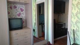 Малосемейка ,кухня-прихожая,угловая ,2 окна разделена на 2 комнаты. Из мебели шкаф, 2 дивана, кухонный стол,навесной шкаф,холодильник, чайник, плита на 2 конфорки, стиральная машина.Санузел с сидячей ванной.