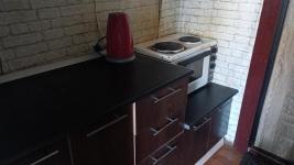 комната и санузел с ванной(без кухни) после ремонта.Есть:холодильник.,эл.плитка,шкаф-купе,система полок.диван.9500+счётчик.. Необходим залог, 5000 р.