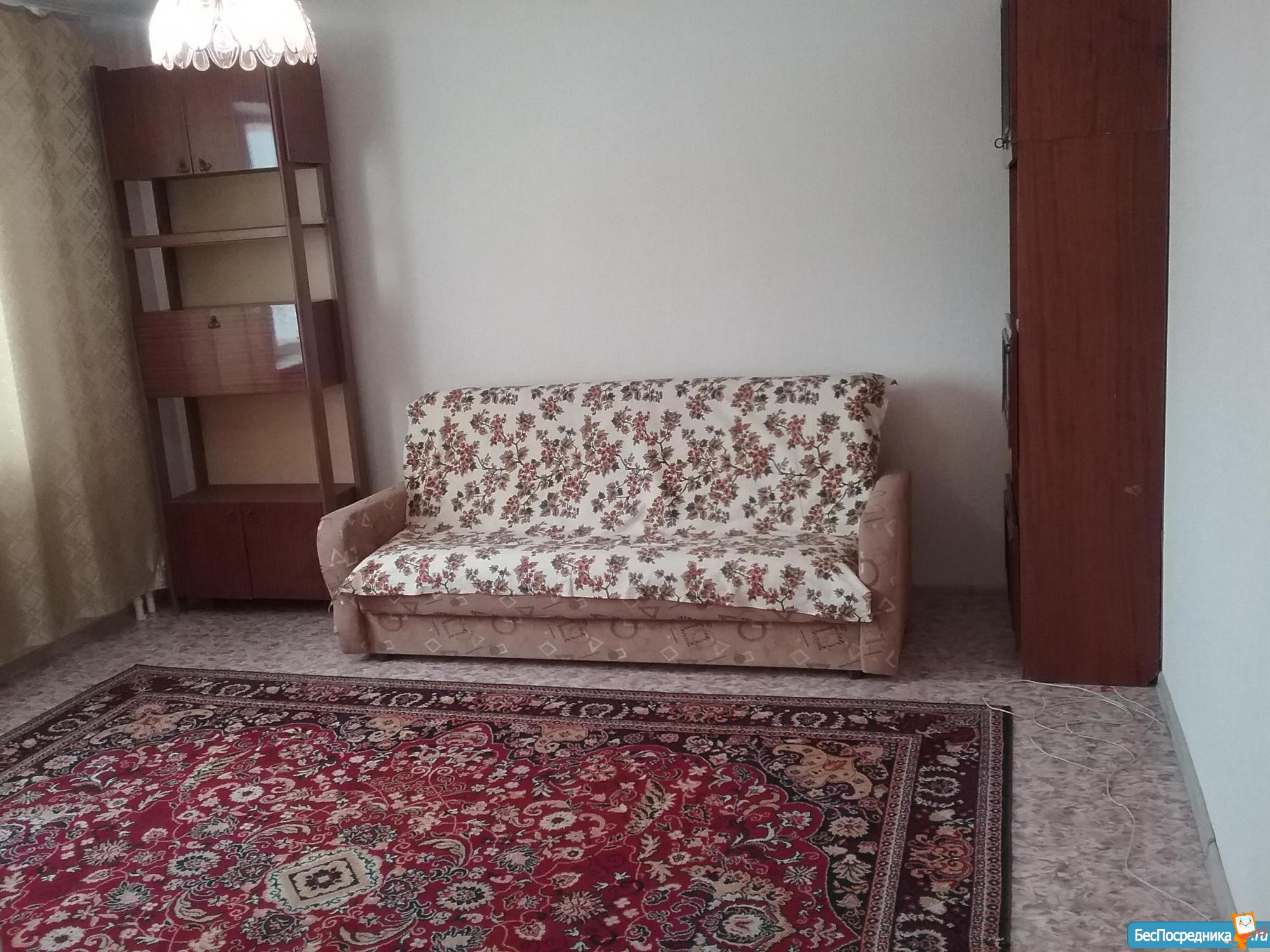 Сдам однокомнатную квартиру на длительный срок. Из мебели: диван, платяной шкаф, тумба под телевизор, кухонный гарнитур, стол, угловой диванчик, электроплита с духовым шкафом. Микрорайон Дружный, современная детская площадка.
