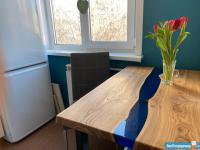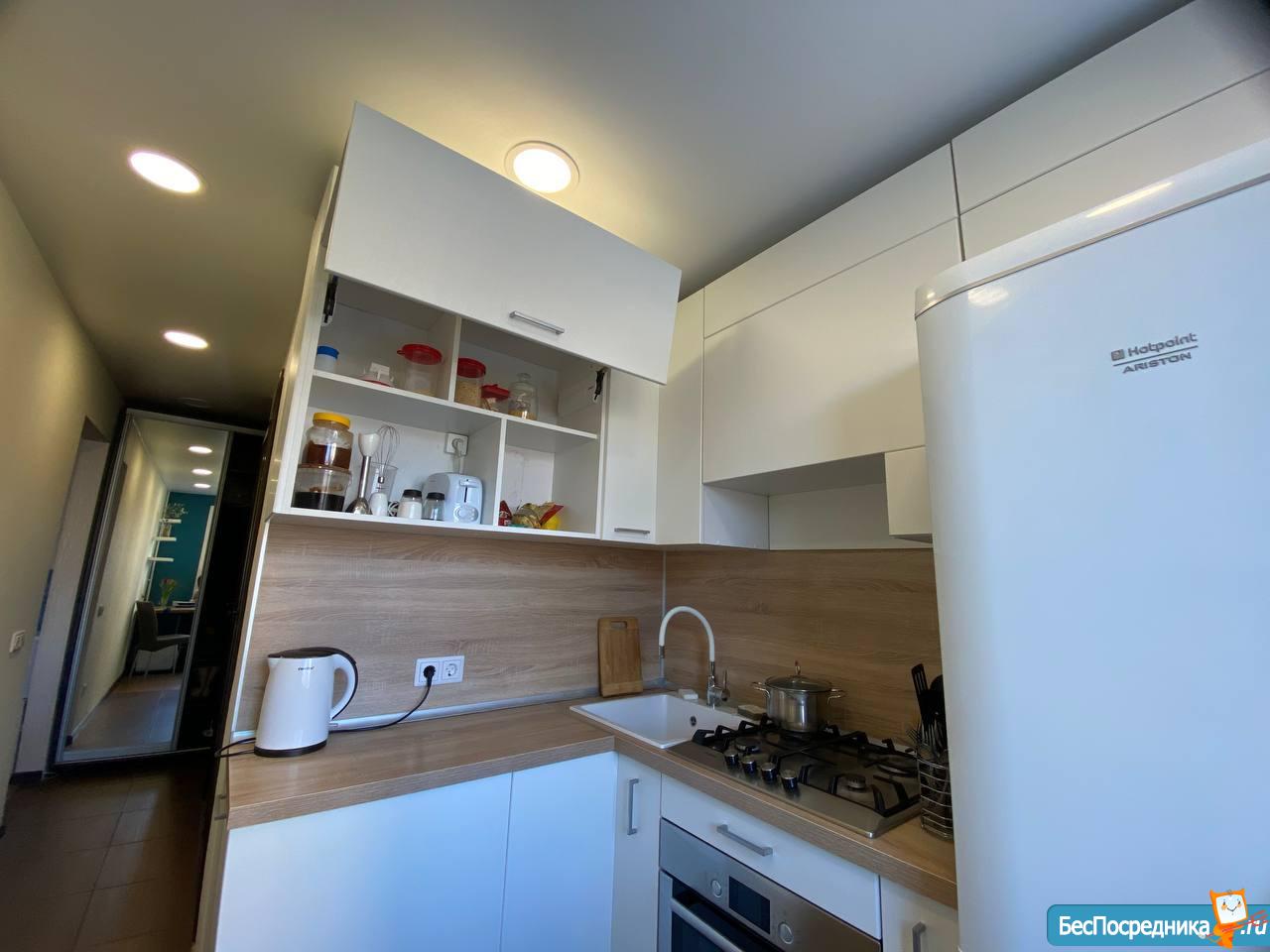 КУХНЯ: новая современная кухня с доводчиками, стол "река" из натурального дерева с эпоксидной смолой, посудомойка Leran, газовая плита Bosch, электрическая духовка Bosch, мощная микроволновка Samsung, холодильник Hotpoint Ariston, блендер, тостер, 2 мягких стула, комплект посуды, милые полочки под ваши сувениры - инстаграмно=)