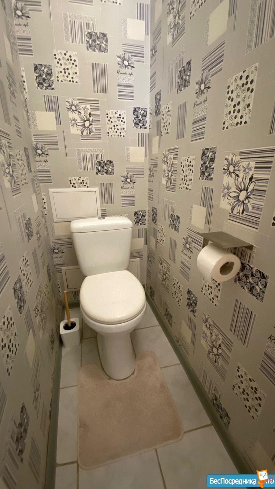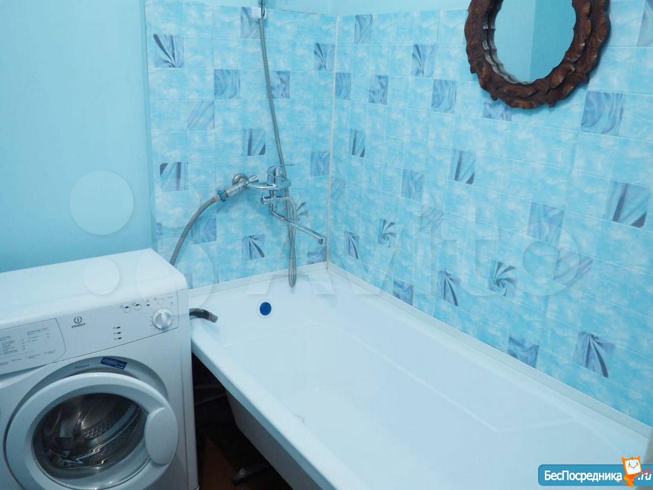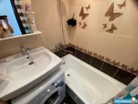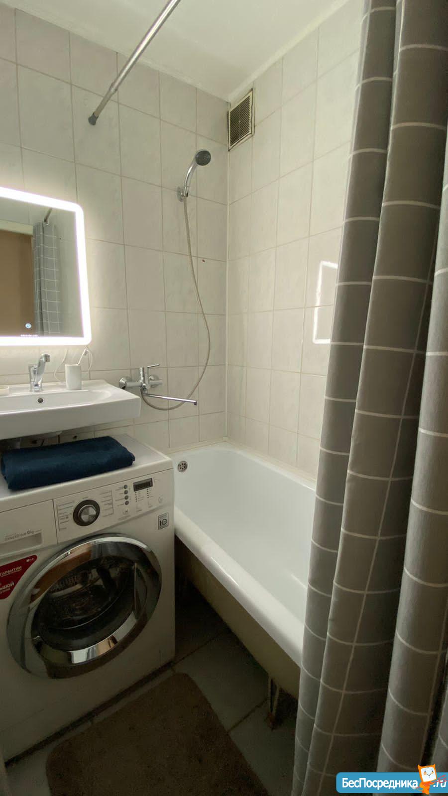 ВАННАЯ и ТУАЛЕТ раздельные. Туалет маленький. Водонагреватель - очень помогает в сезон летних отключений. Кафель на стенах и полу. В ванной комнате: стиральная машина Indesit, ванная, раковина, шкаф с полками и зеркалом.