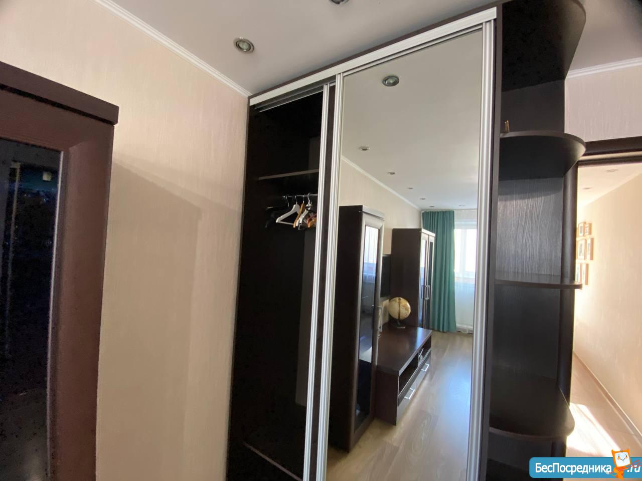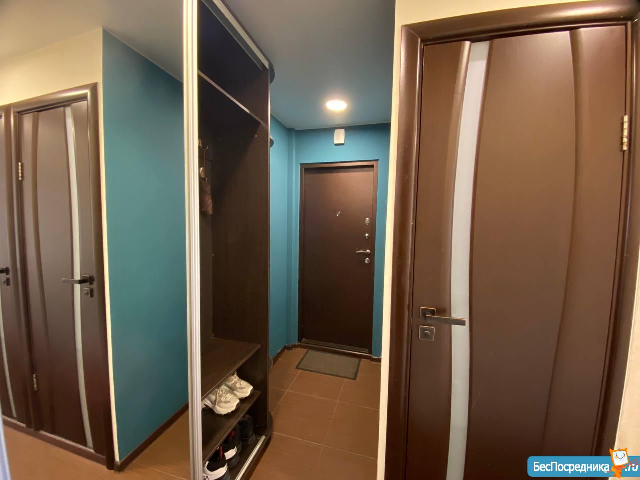 В КОРИДОРЕ: на входе большой шкаф-купе с зеркалом. Современная дверь. Домофон.