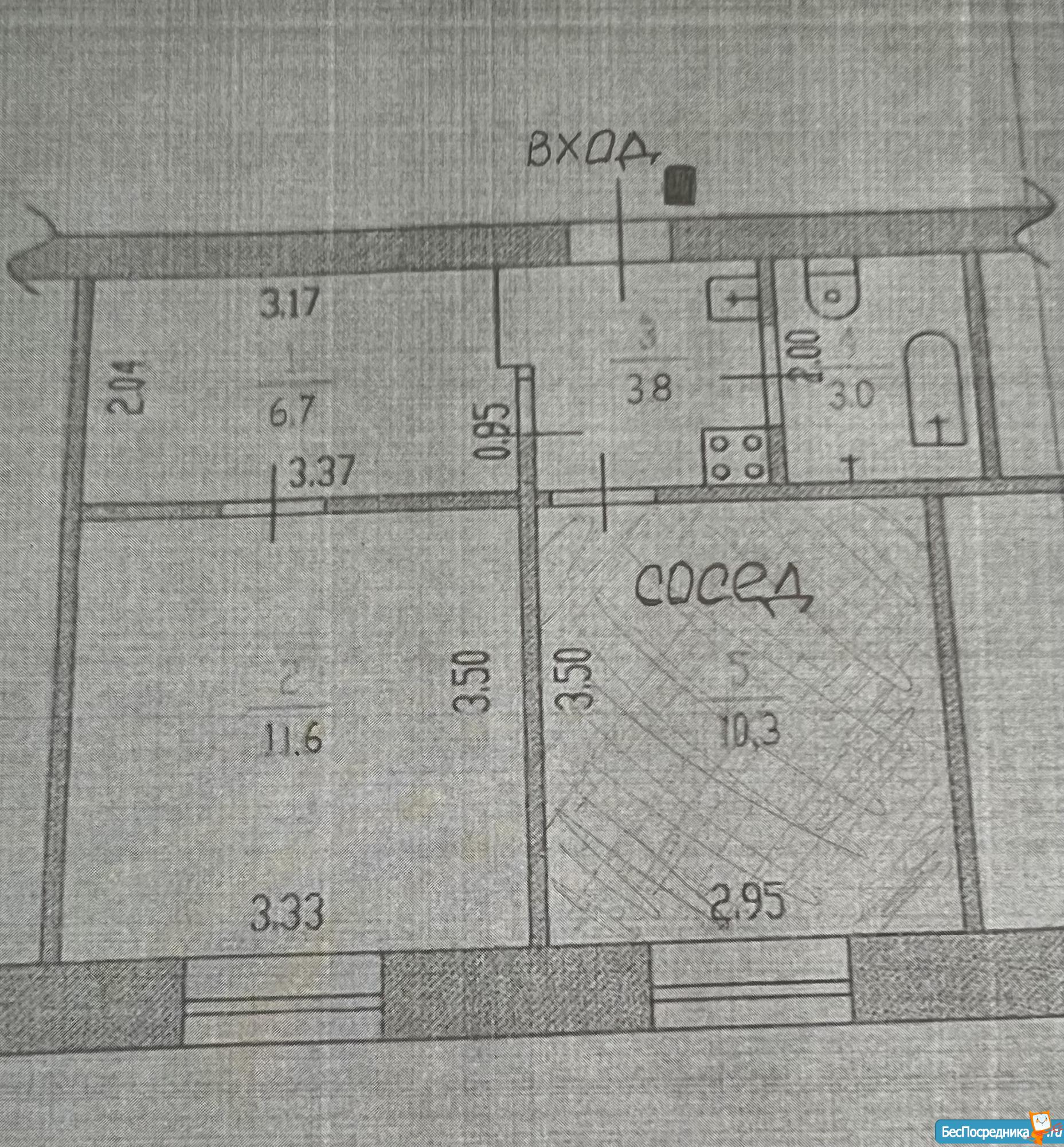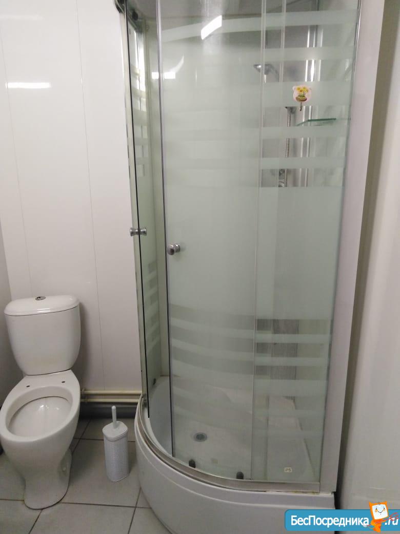 Санузел и душ на двух хозяев. В секции проживает ещё одна семья (муж с женой), чистоплотные, тихие.