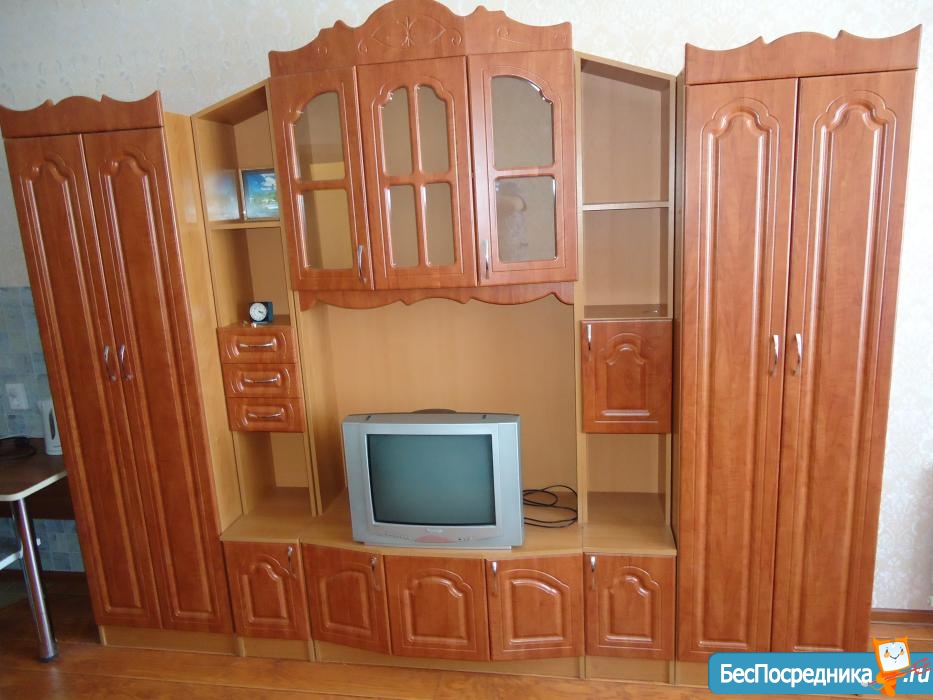 Мебель: кровать, диван (2-ух местный, раскладывается), 2 кресла, тумба под телевизор, комод, письменный стол, стулья, кухонная мебель, 2 больших шкафа.
