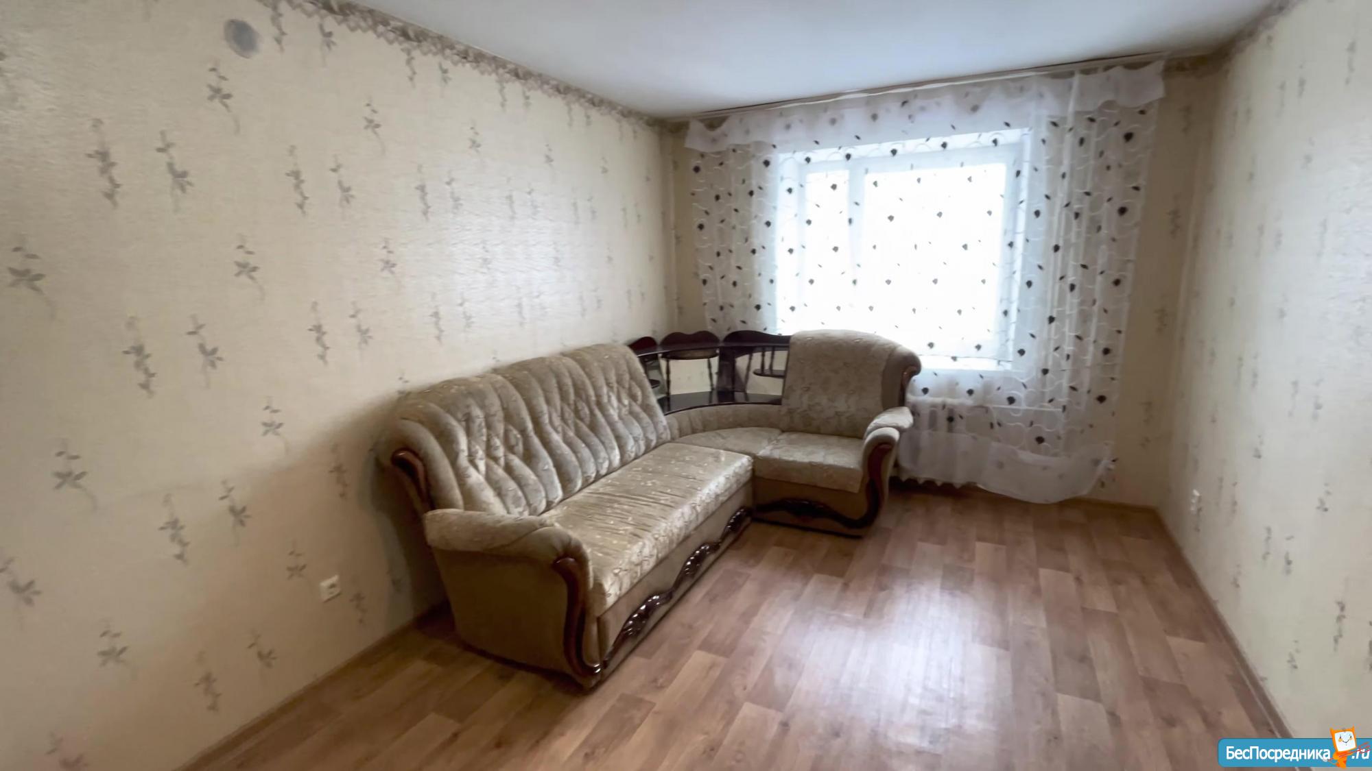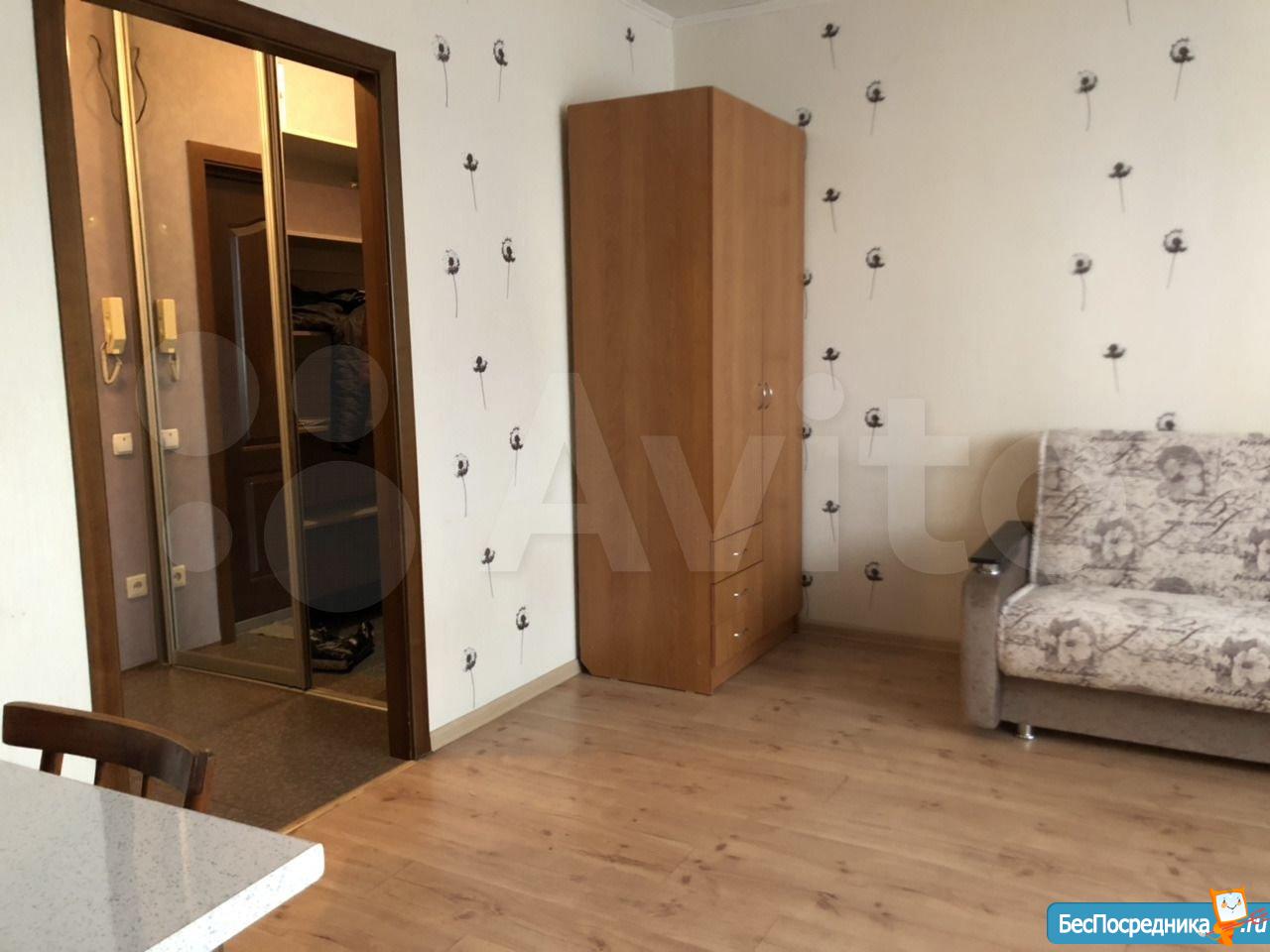 2 комнаты, переделана из однокомнатной, был куплен новый диван и холодильник, работает вытяжка, выделена гардеробная, домофон работает. Район с развитой инфраструкрой, напротив ТЦ праздничный.
