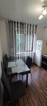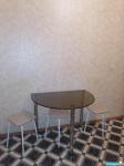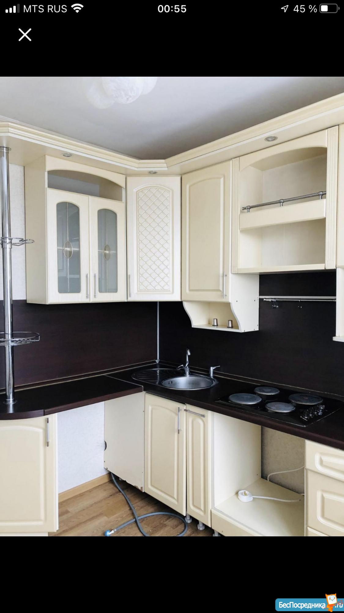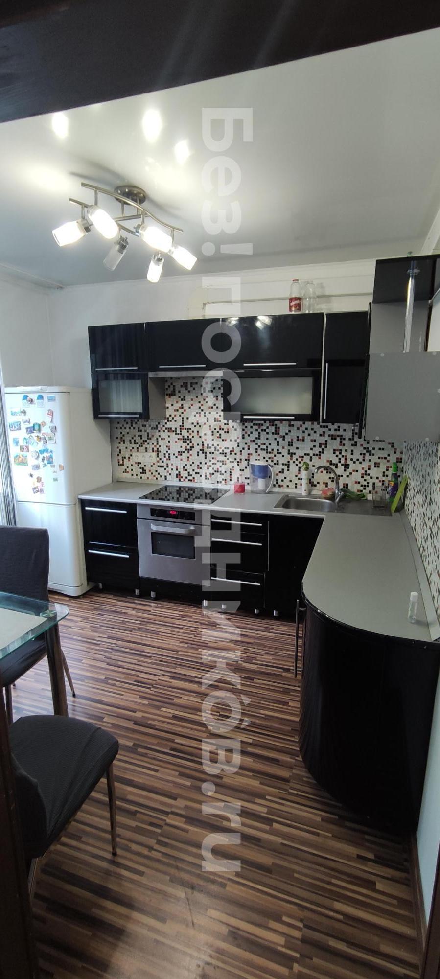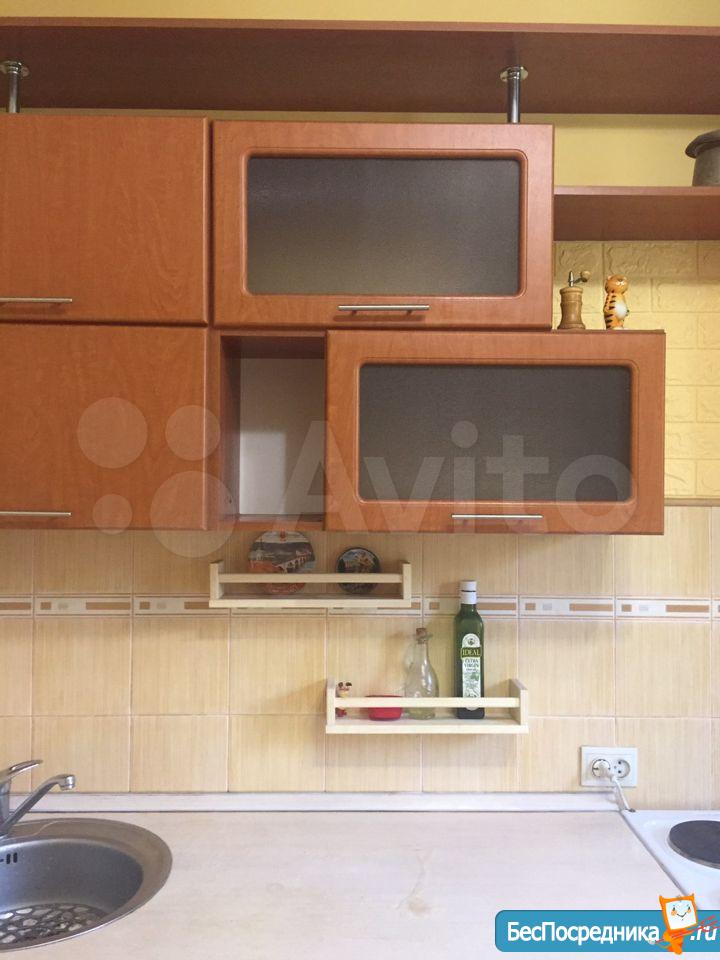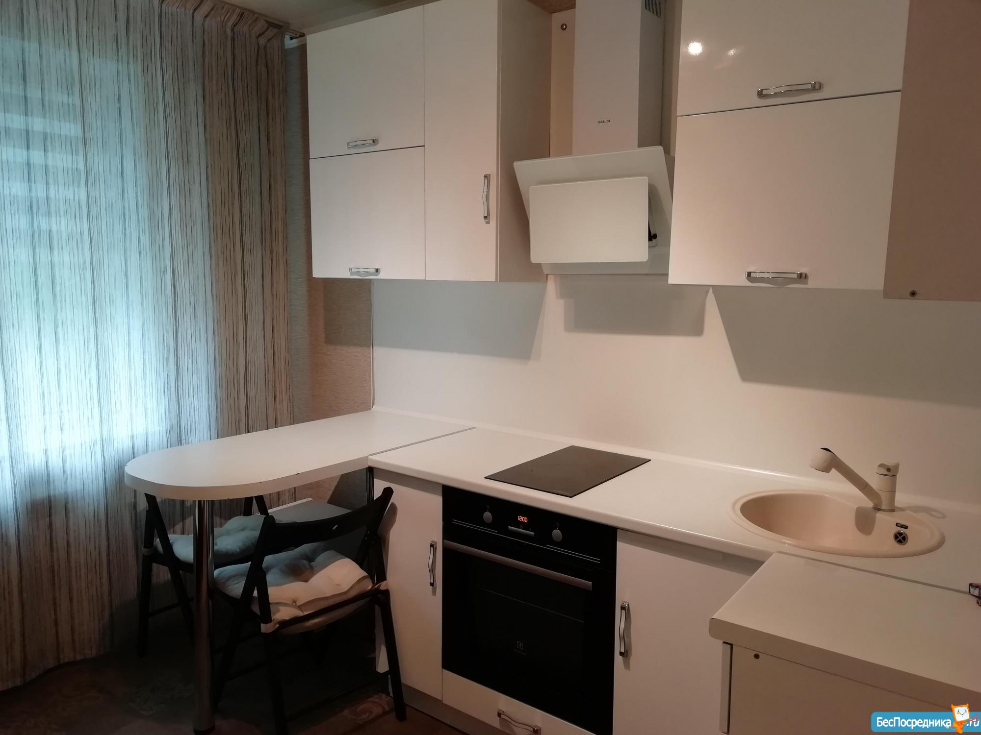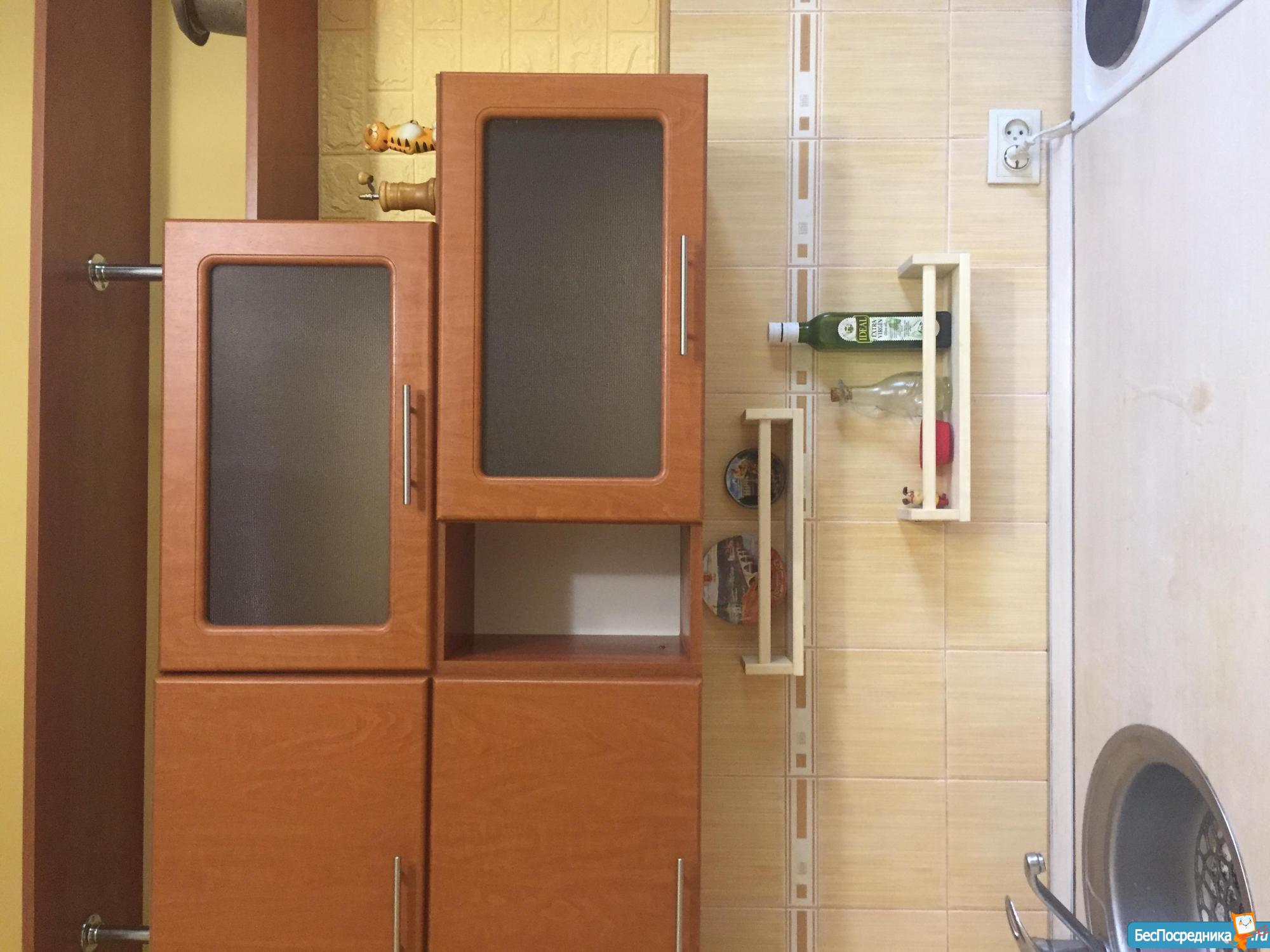 Есть кухонный гарнитур, духовой шкаф, варочная панель, стол, тубуреты, в одной из комнат диван. В туалете - водонагреватель. Два застекленных балкона. Бытовая техника отсутствует. Счётчики оплачиваются отдельно.