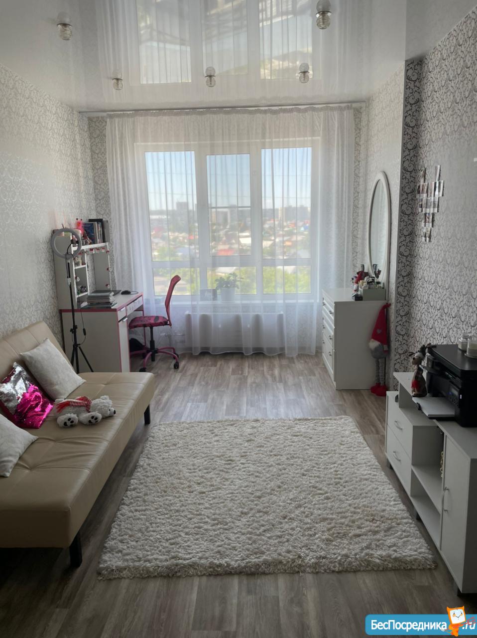 В квартире сделан свежий ремонт. Большая лоджия с панорамным видом на город (восточная сторона). Ранее не сдавалась.