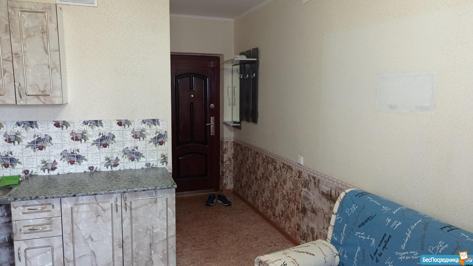 Сдаю студию на длительный срок, общая площадь 19.5м., жилая 16.5м.с балконом(балкон застеклен).Квартира без мебели и техники(только кухонный гарнитур и на балконе шкаф для одежды и тумбочка).квартира чистая(без насекомых), теплая, окна на солнечной стороне, выходят на детскую площадку.Оплата за первый и последний месяцы + 300 руб.( за показ).Предпочтение девушке. Платежеспособной, чистоплотной, без вредных привычек и без животных.