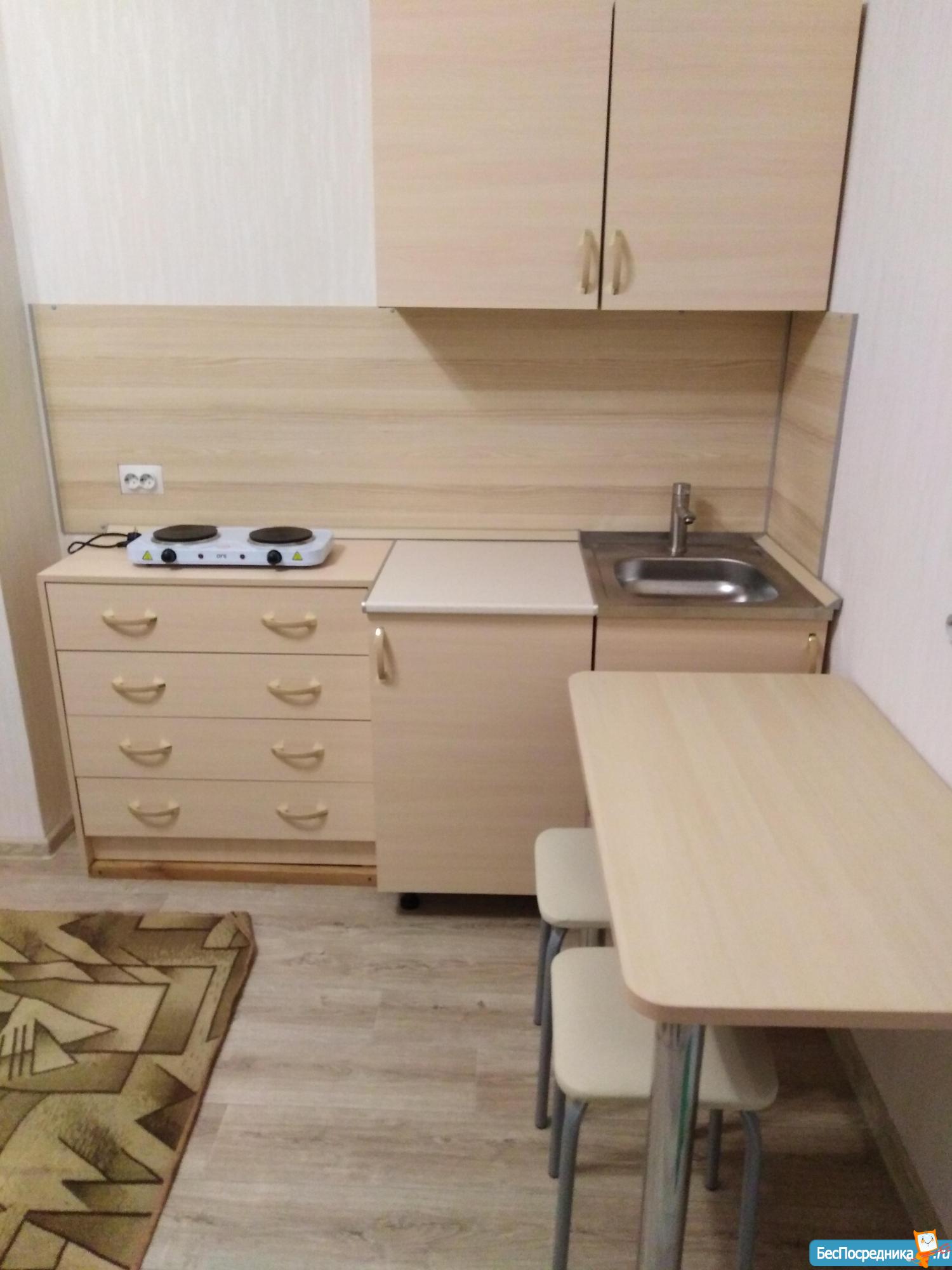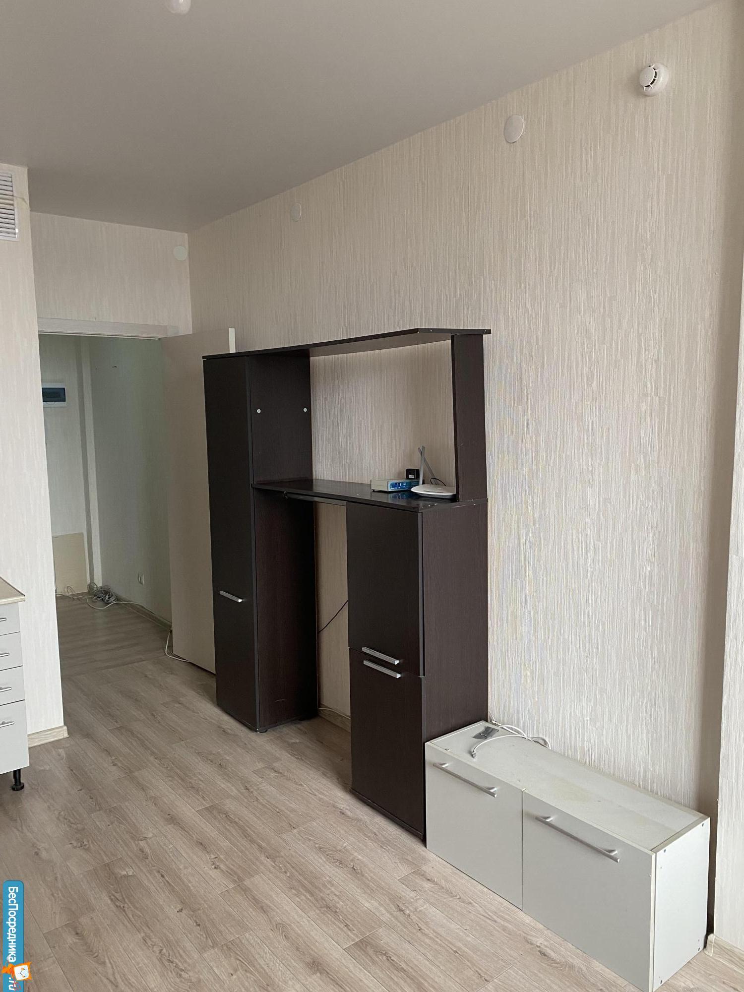 Сдам частично мебелированную квартиру-студию с лоджией (имеется кухонный гарнитур, электрическая плита, стиральная машинка, стенка под телевизор).