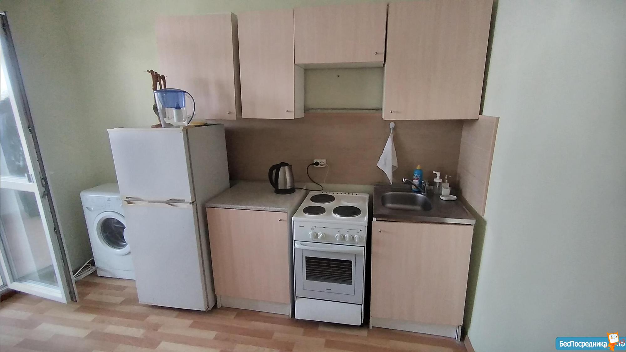 Собственник. Кухня-прихожая в центре для ОДНОГО человека. Интернет проведен. Есть встроенная мебель (телевизор, шкаф, диван, холодильник, плита, чайник, стиральная машина автомат). Без балкона. Туалет, душ. Удобная транспортная развязка. Оплата 10000+счетчики.