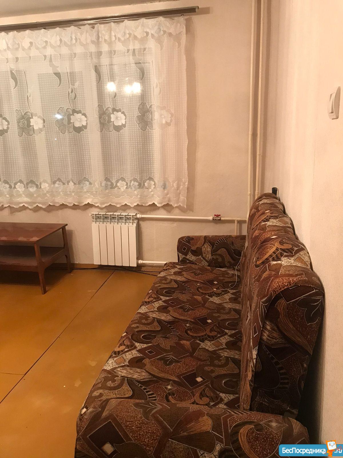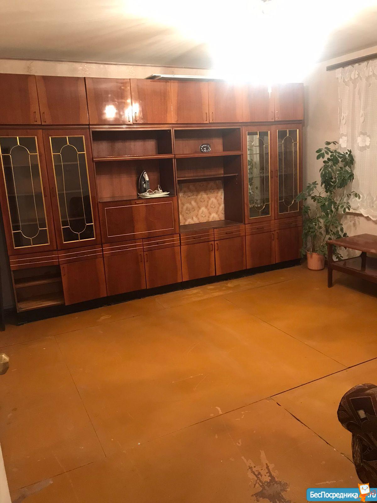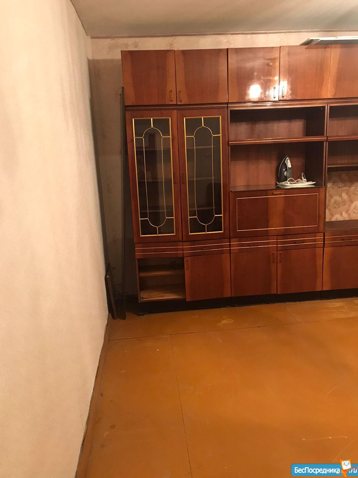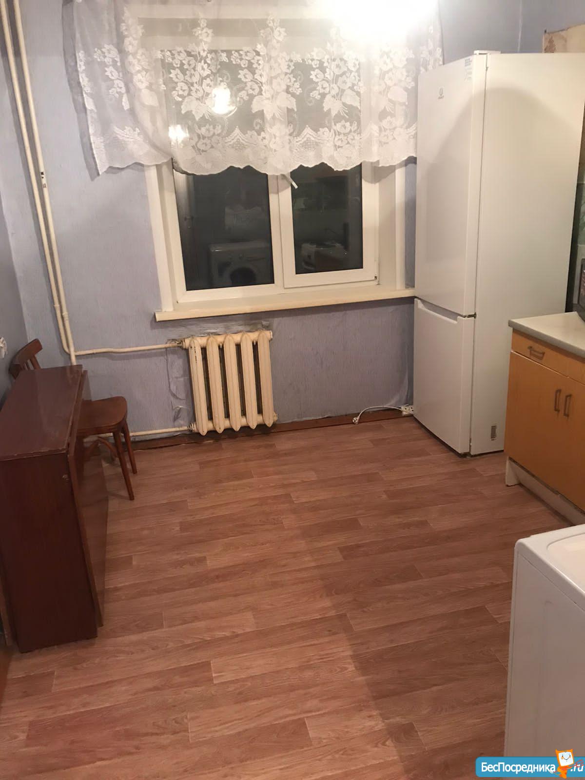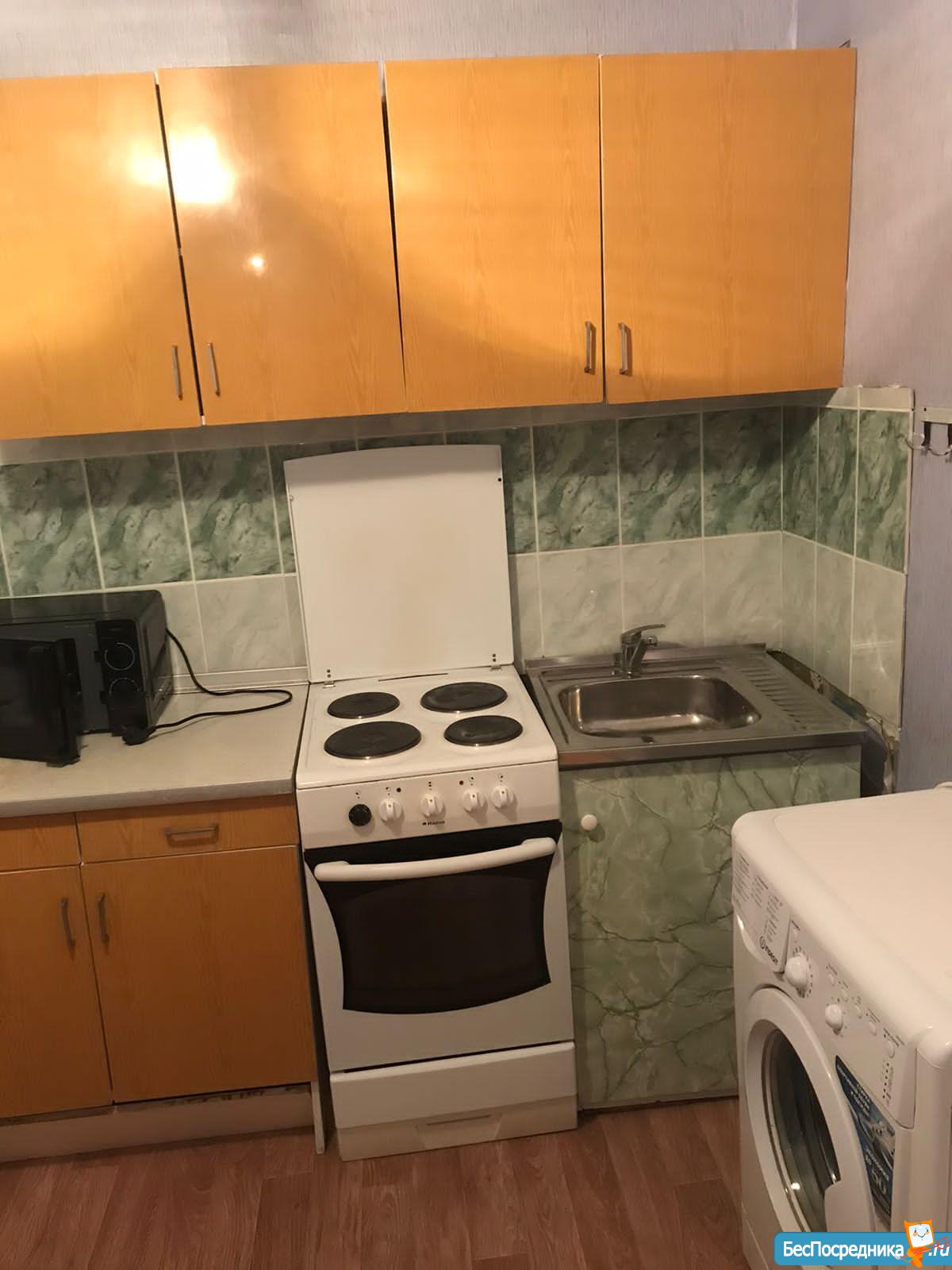 В квартире есть: кухонный гарнитур, стол и стулья, холодильник, микроволновка, некоторая посуда, шкаф, комод, телевизор. Кровать, стиральная машина по договорённости.