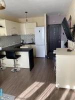 Чистая, светлая, тёплая студия. Электроплита, телевизор (кабельное, интернет), микроволновая печь, холодильник, стиральная машина.