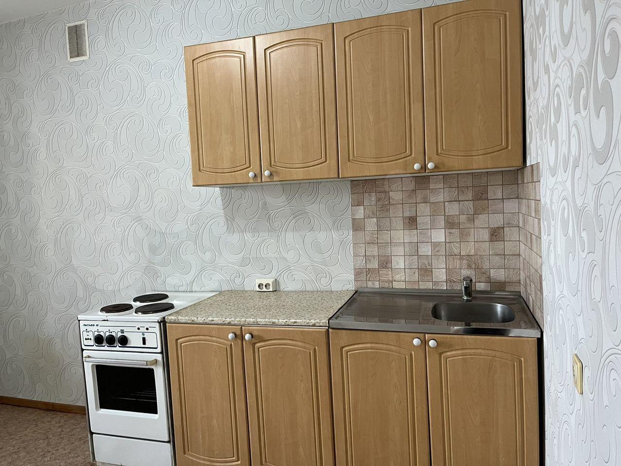В квартире есть мебель и бытовая техника: плита, холодильник и стиральная машинка.