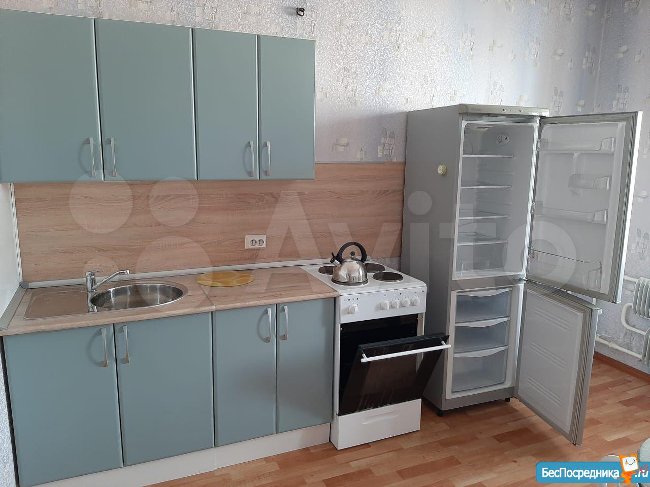 В квартире есть мебель и бытовая техника: плита, холодильник, стиральная машинка.