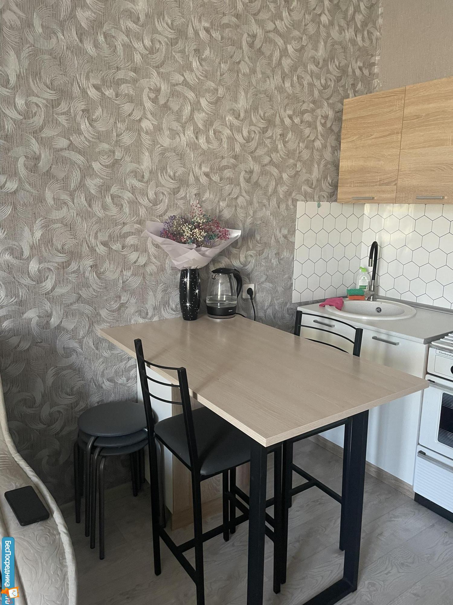 Квартира студия полностью мебелерованная. Есть всё для жизни. Новый дом. Хорошая транспортная развязка.