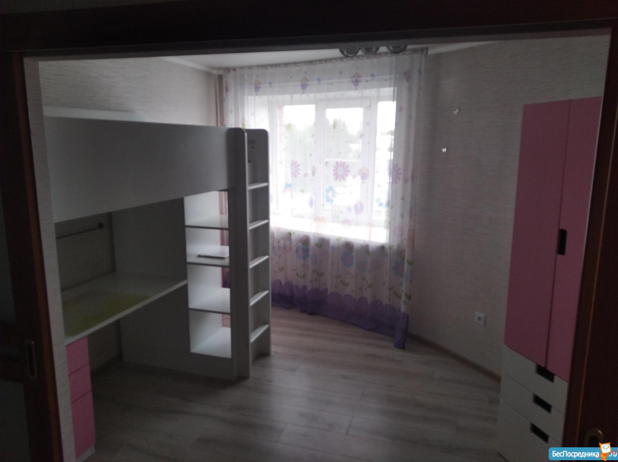 Отдельная детская со всей мебелью, спальня, большой зал-гостиная объединен с кухней.