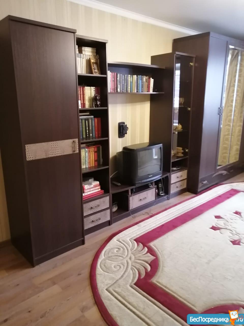 Мебилированная. Есть всё для проживания! Раздельный санузел, лоджия 6 метров, подвесной потолок, жидкие обои, новый диван, кухонный гарнитур большой, холодильник большой, стиральная машинка, микроволновка, гладильная доска, утюг, платяной шкаф огромный и большое зеркало. Столы, табуреты, жк телевизор, интернет какой хотите такой и подключайте, на кухне приборы, ножи, сковородки, кастрюли, небольшой пылесос, входная дверь массивная шумоизоляционная. Залогов мне не надо, комиссий нет. Собственник. Коммунальные по квитанции. Место расположения дома удобное, всё рядом: учебные заведения, общественный транспорт, магазины. Без животных. Курить в квартире запрещено. Квартиру в октябре санэпидемстанция обработала от предполагаемых насекомых!