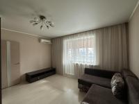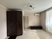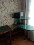 Квартира в центре города. Есть все необходимое для жизни. В комнате: диван, шкаф, тумба по телевизор (телевизора нет), кондиционер, шторы, гладильная доска. В кухне: кухонный гарнитур со встроенной техникой, холодильник, стиральная машина, стол обеденный, 4 табурета. В коридоре - шкаф-купе. В ванной - водонагреватель. Есть зоны для хранения общем тамбуре.