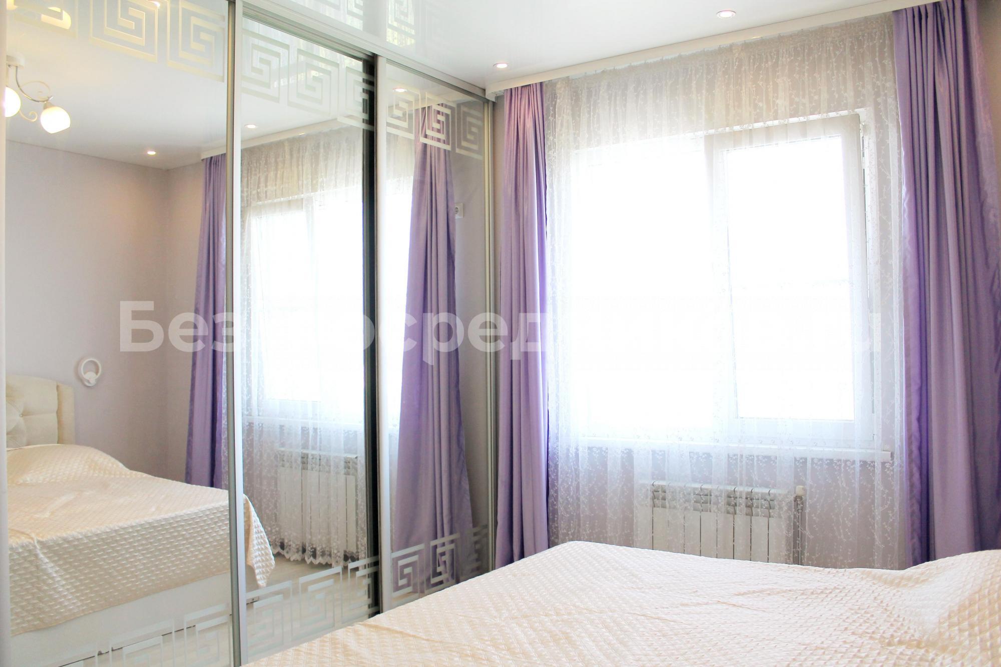 Спальня: двухспальная кровать с ортопедическим матрасом, встроенный шкаф (5 метров), детское спальное место.