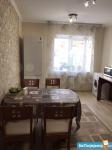 Квартира в хорошем состоянии, сделан ремонт, светлая, теплая, теплый пол. Квартира просторная: прихожая, гардеробная,большой зал, кухня 10 кв.м., лоджия 8 кв.м. Туалет совмещен с ванной. На кухне гарнитур, обеденный стол. В зале кровати, стол.