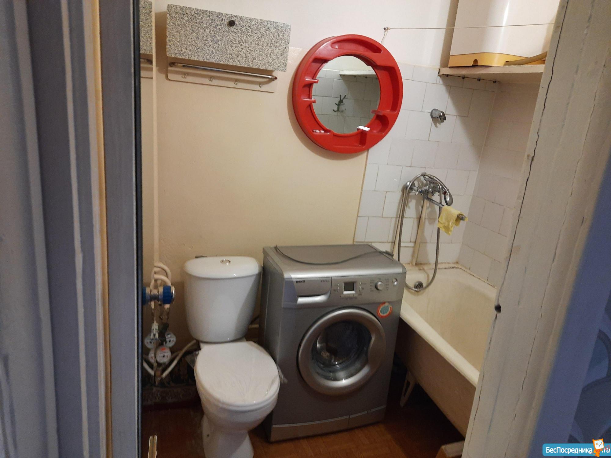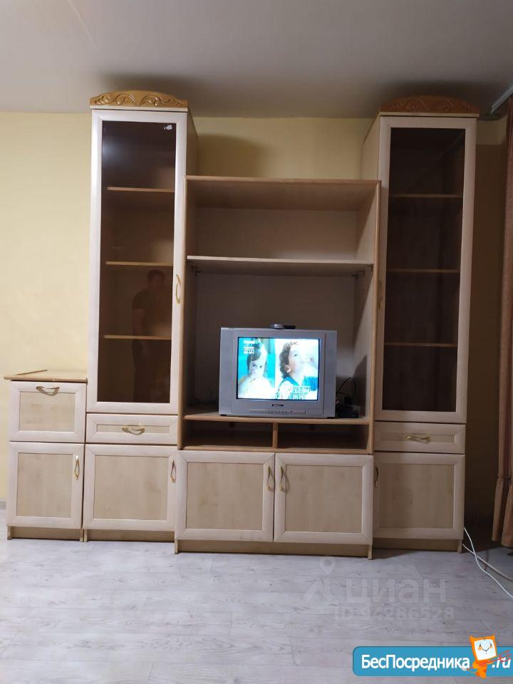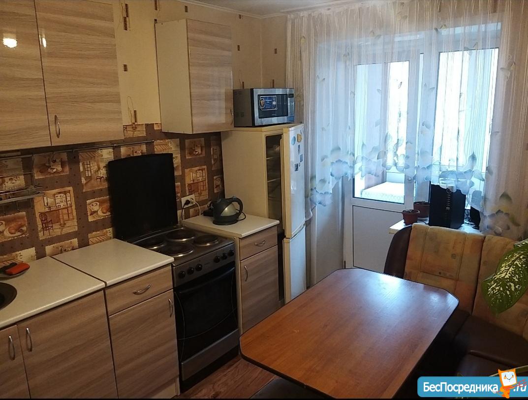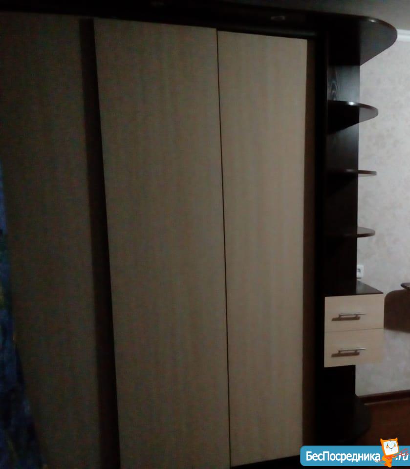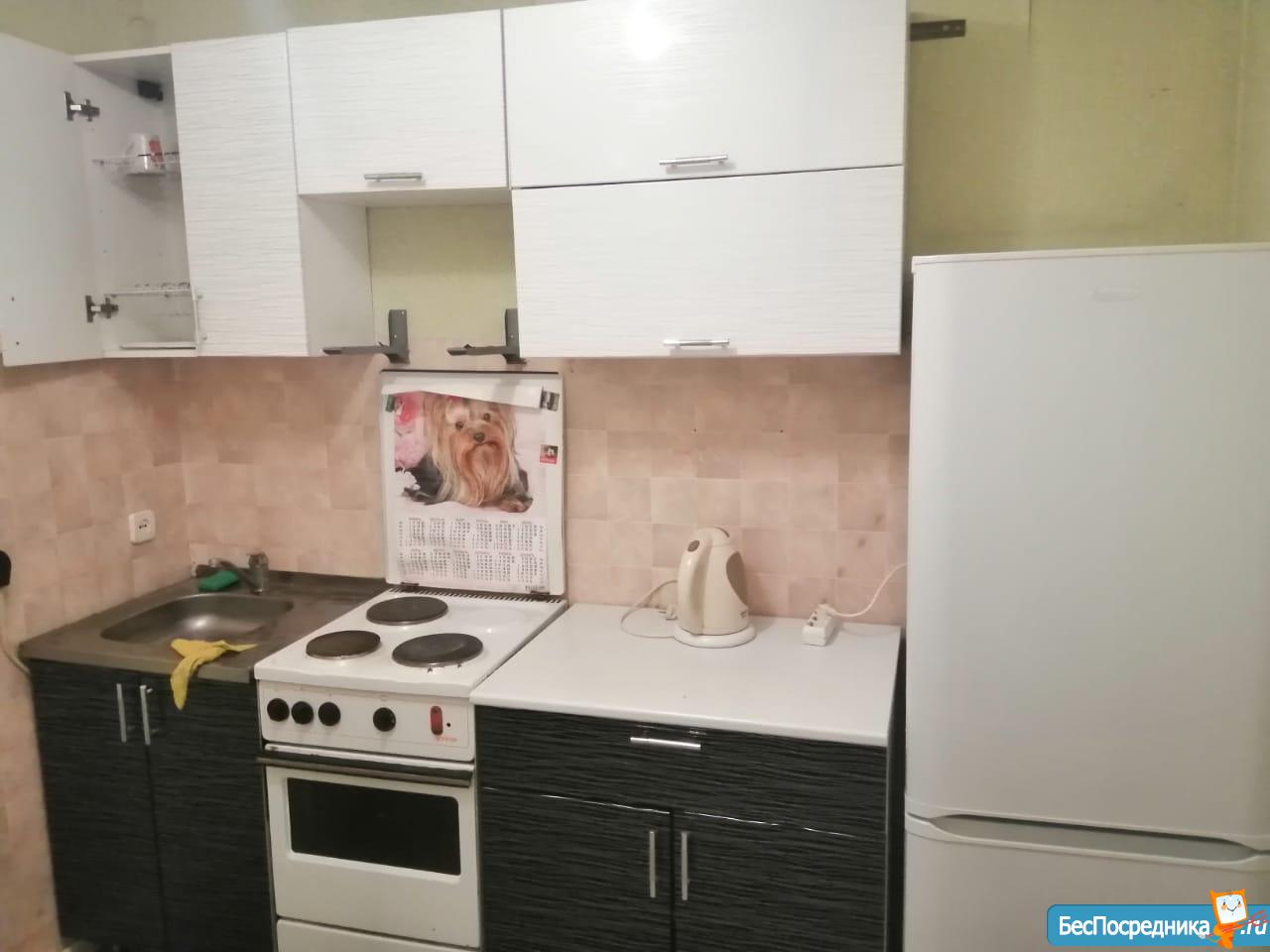 В квартире есть все необходимое: диван раскладной, кресло, тумбочка, шкаф купе с зеркалами, кондиционер, кухонный гарнитур, плита, холодильник, водонагреватель, стиральная машинка, есть немного посуды.