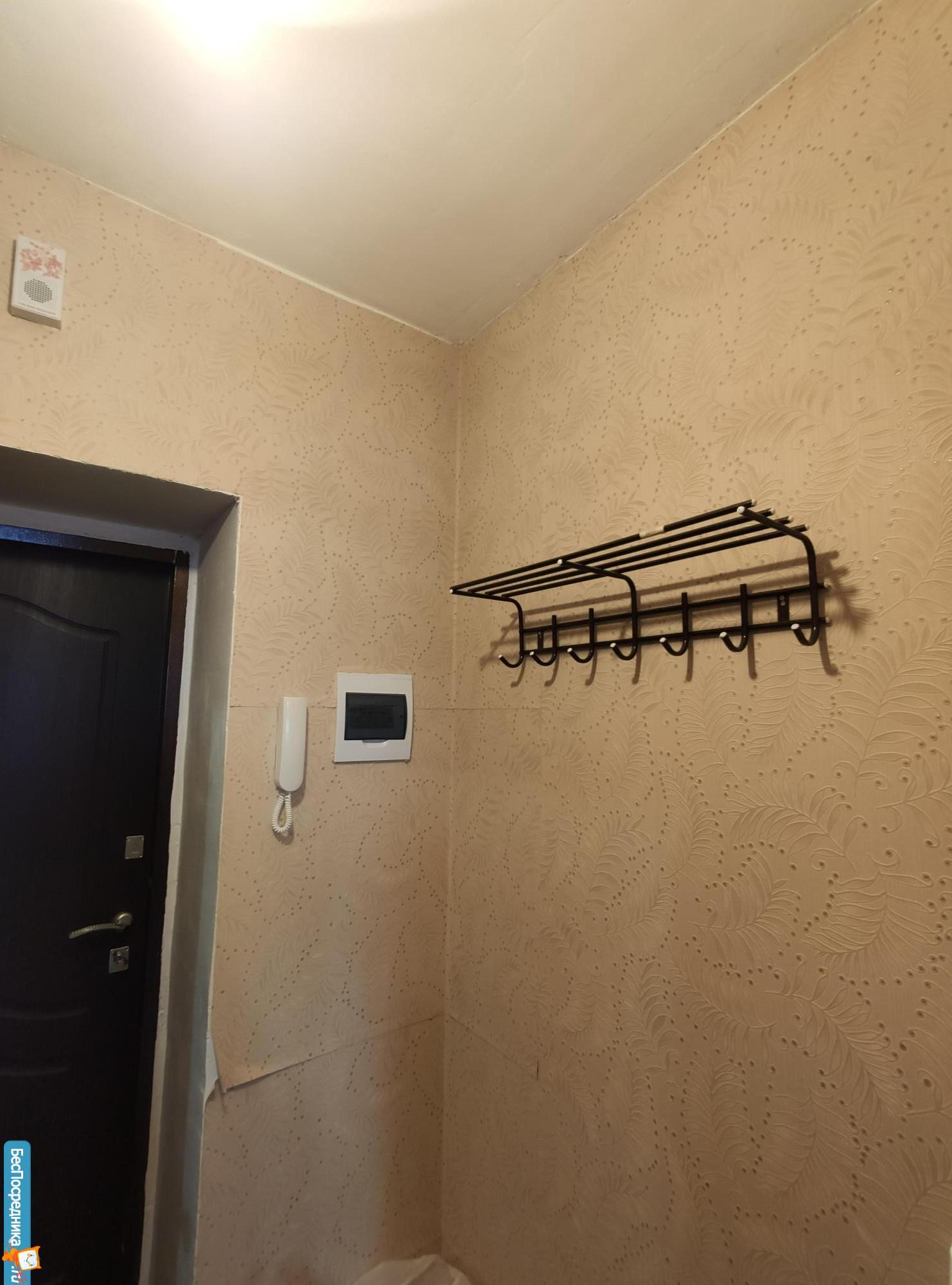 В квартире: 2 дивана, встроенные плита и панель, холодильник, стиральная машина, микроволновка, шкаф, прихожая, обувница.