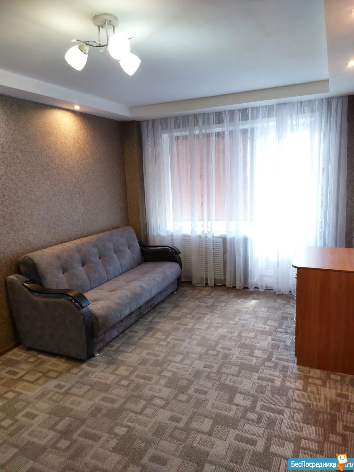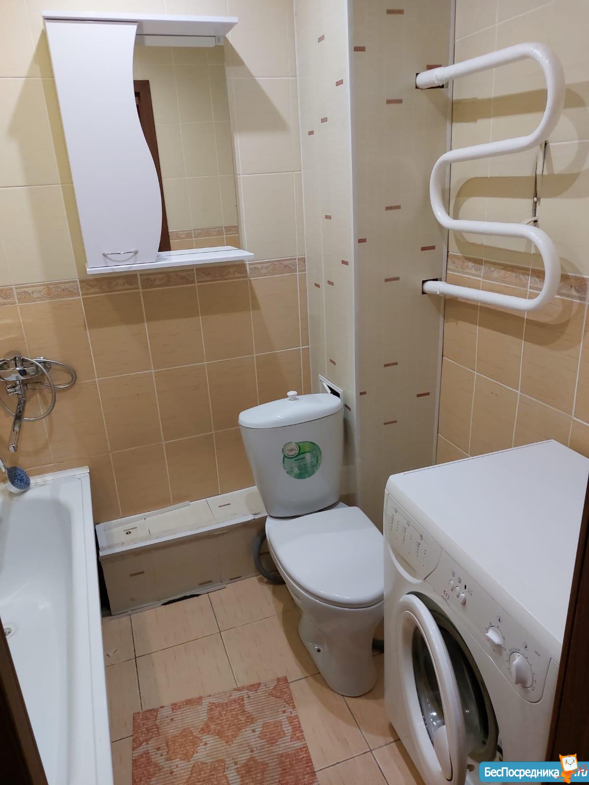 1-комнатная квартира, на длительный срок, частично меблированная, холодильник, стиральная машина-автомат. Оплата помесячно 18000р + вода и свет по счётчикам.