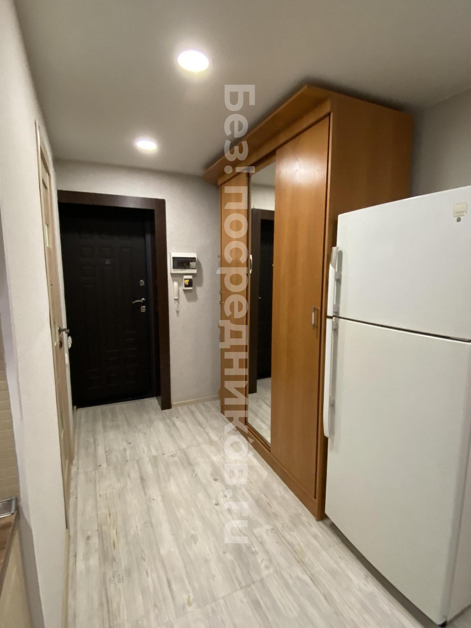 Сдаётся студия на длительный срок. В квартире есть все необходимое для проживания..: диван, кухонный гарнитур, обеденная зона, стиральная машина автомат, шкаф для хранения вещей, холодильник ..квартира стоимость аренды 14 000 плюс Коммунальные услуги.