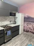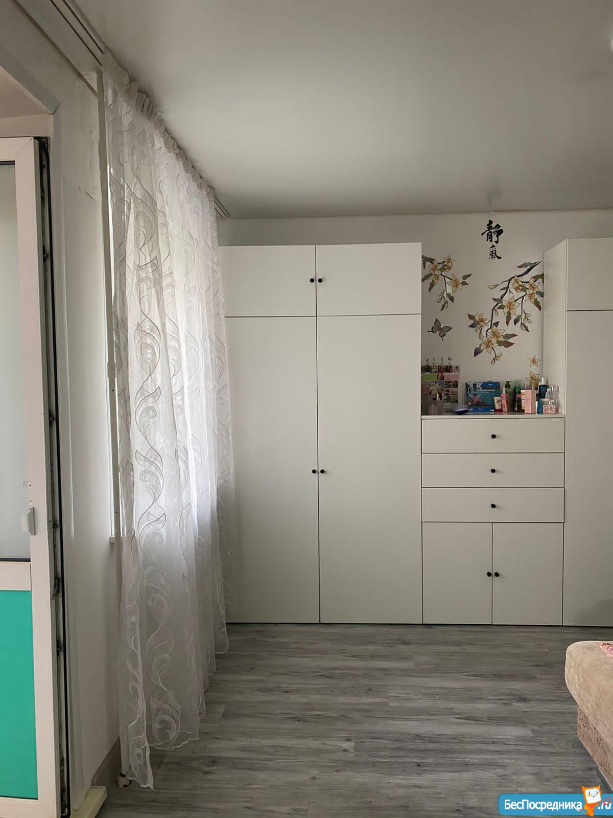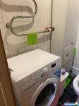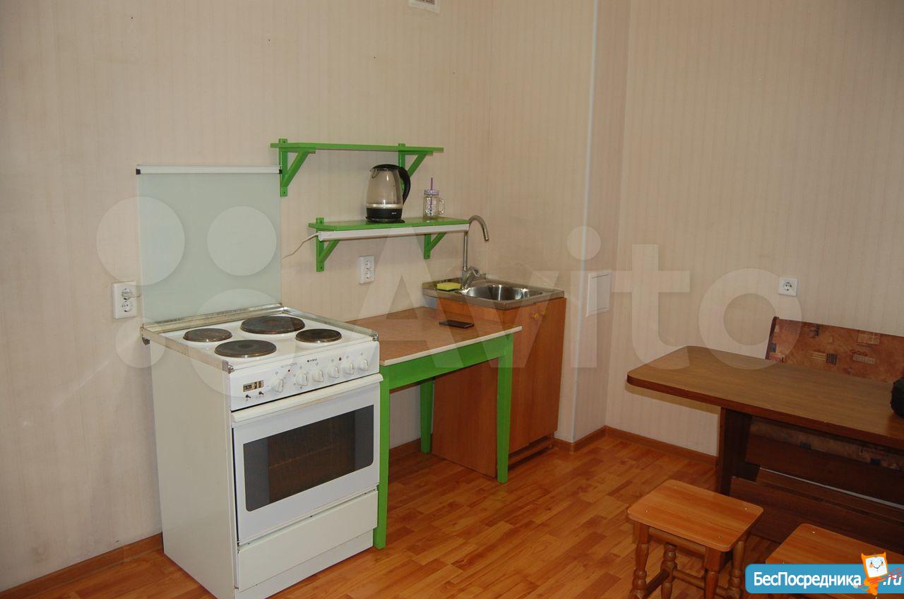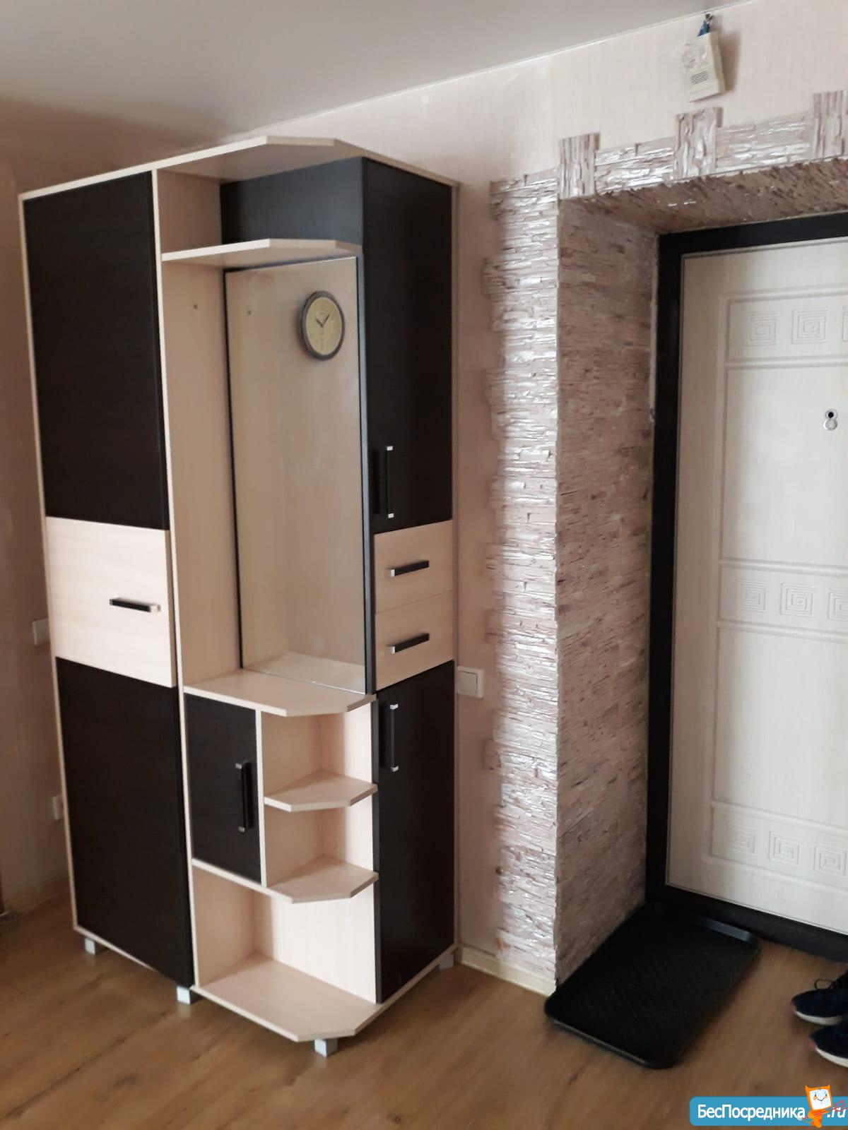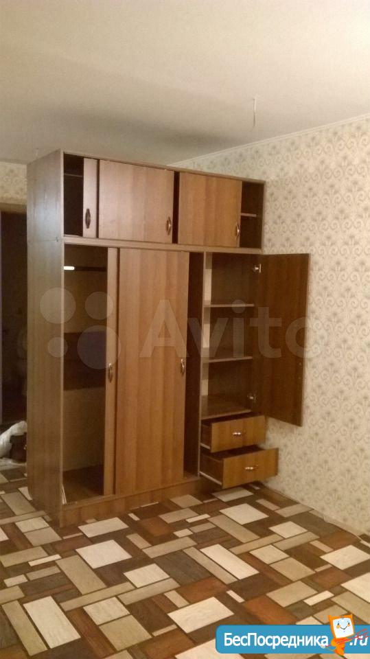 Квартира частично меблирована: диван-кровать, плита, стиральная машинка, обеденный стол, вместительный шкаф для одежды, чайник.