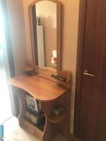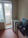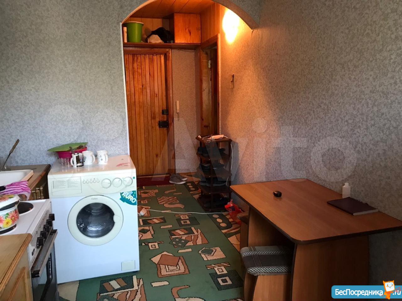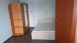 В комнате диван, большой встроенный шкаф-купе, журнальный стол, полочка и компьютерный стол + балкон. На кухне - кухонный гарнитур, холодильник, стиральная машина, стол, угловой кожаный диван. В ванной - водонагреватель.