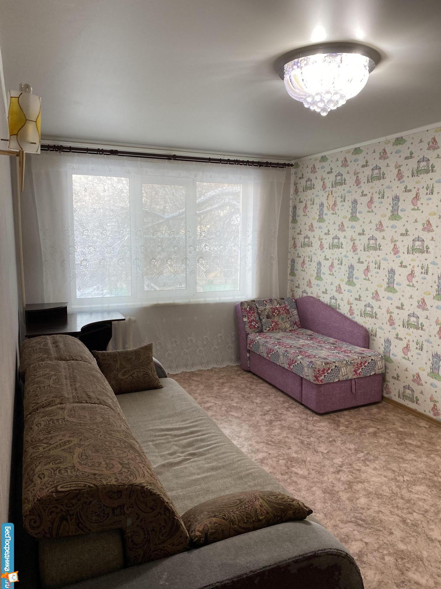 1 комнатная квартира в хорошем спокойном районе ,в шаговой доступности 2 детских сада,3 школы,магазины,остановка,спортивный комплекс Победа.В квартире имеется все необходимое:стиральная машина,холодильник,микроволновка,телевизор,шкаф,диван(не тот,что на фото,лучше).Цена 14000+ счетчики .Залог обязателен.