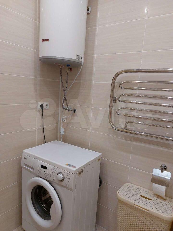 Холодильник, индукционная плита, стиральная машина, бойлер, двухспальная кровать, шкаф-купе, гладильная доска, сушилка.