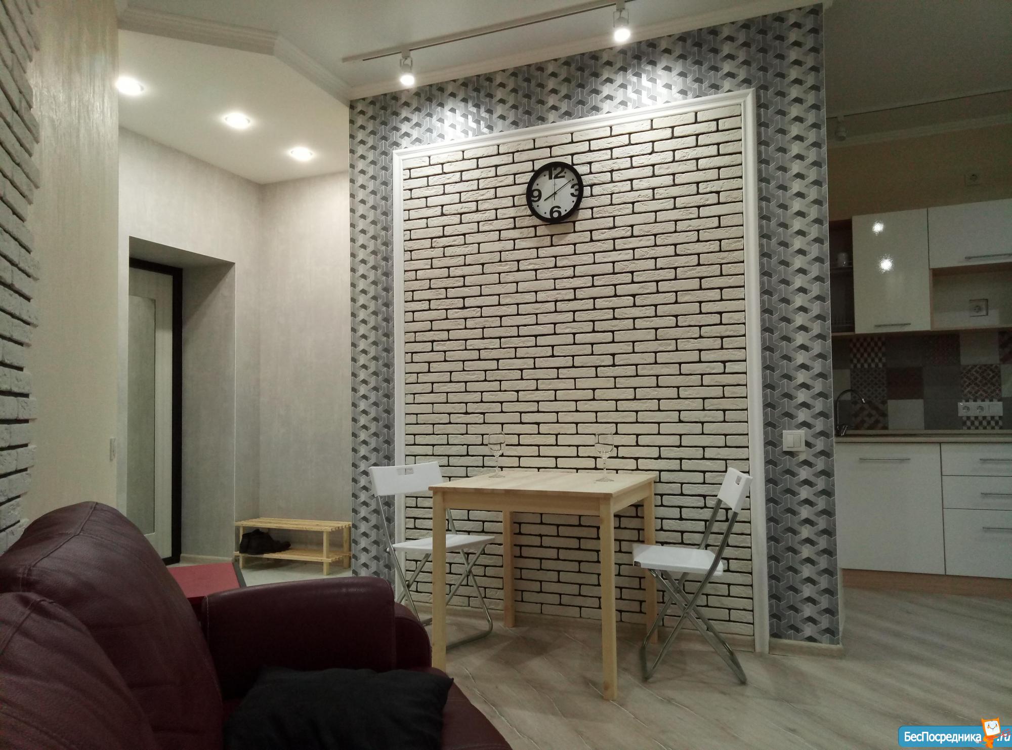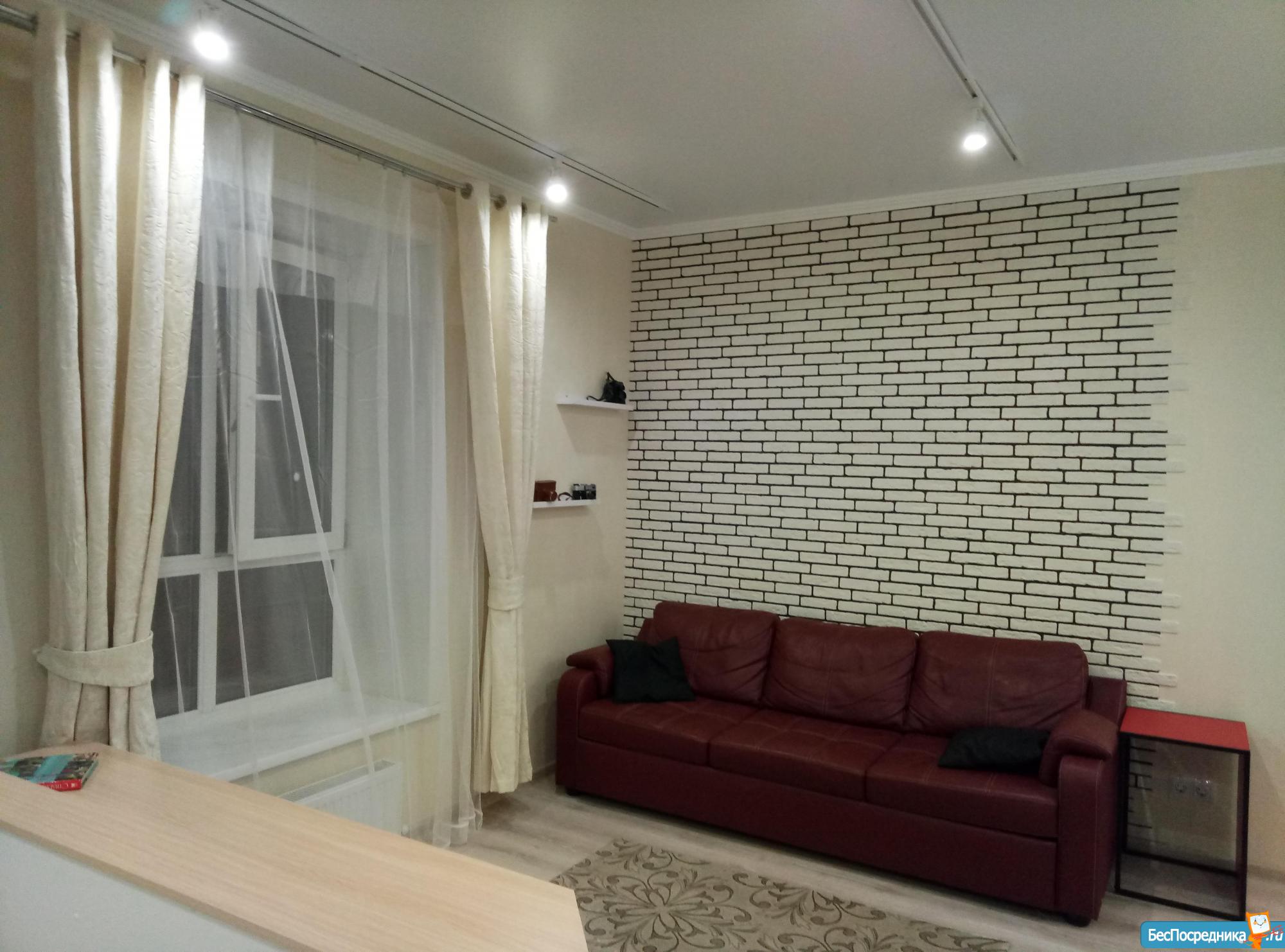 Только что сделан ремонт в стиле студия, гостинная. Дизайнерская отделка. Есть вся необходимя мебель и оборудование.