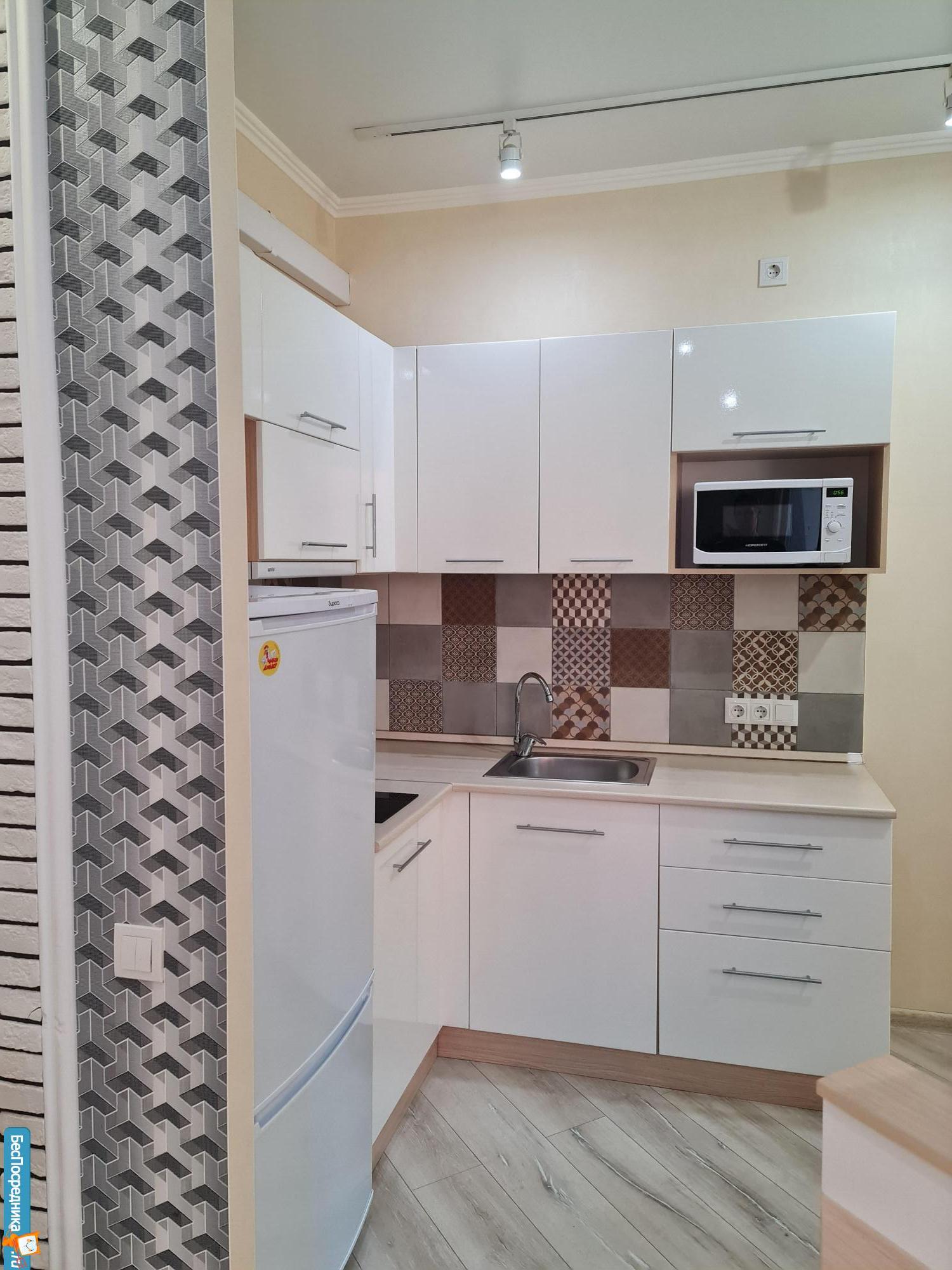 - встроенная кухня с встроенным холодильником, варочной панелью, духовым шкафом + стиральная машина.