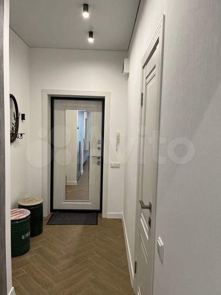 Планировка: небольшой коридор(4-5кв.), ванная комната, просторная кухня-гостиная, большой балкон с панорамными окнами, спальня и гардеробная.
