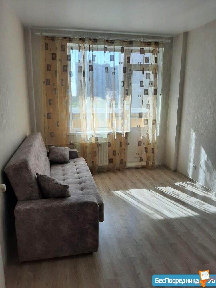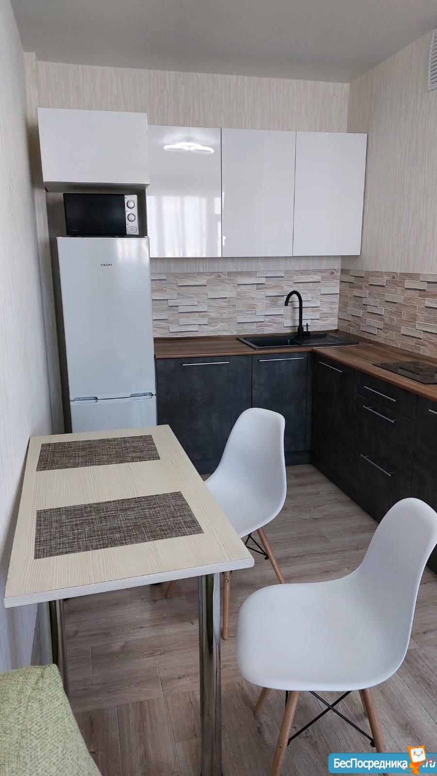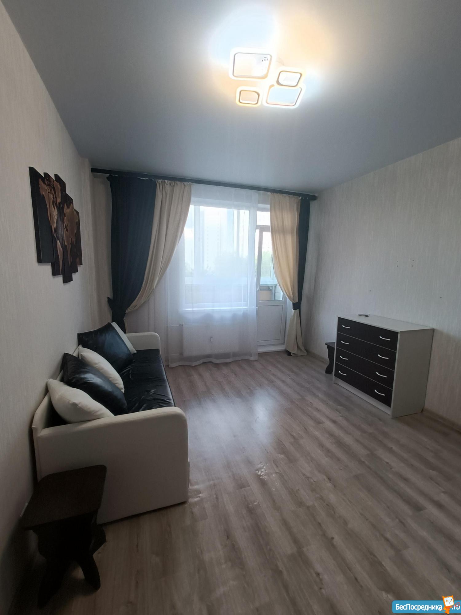 Однокомнатная квартира, в новом доме. В квартире, новый диван, стол, кухонный гарнитур, большой холодильник, микроволновка,стиральная машина.