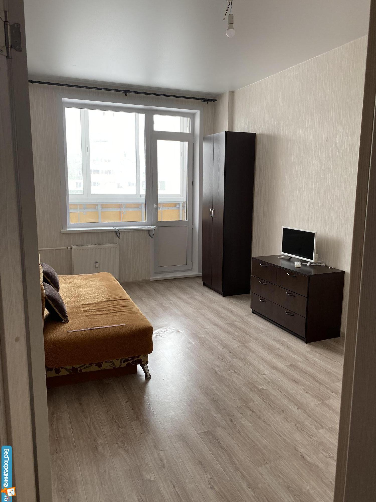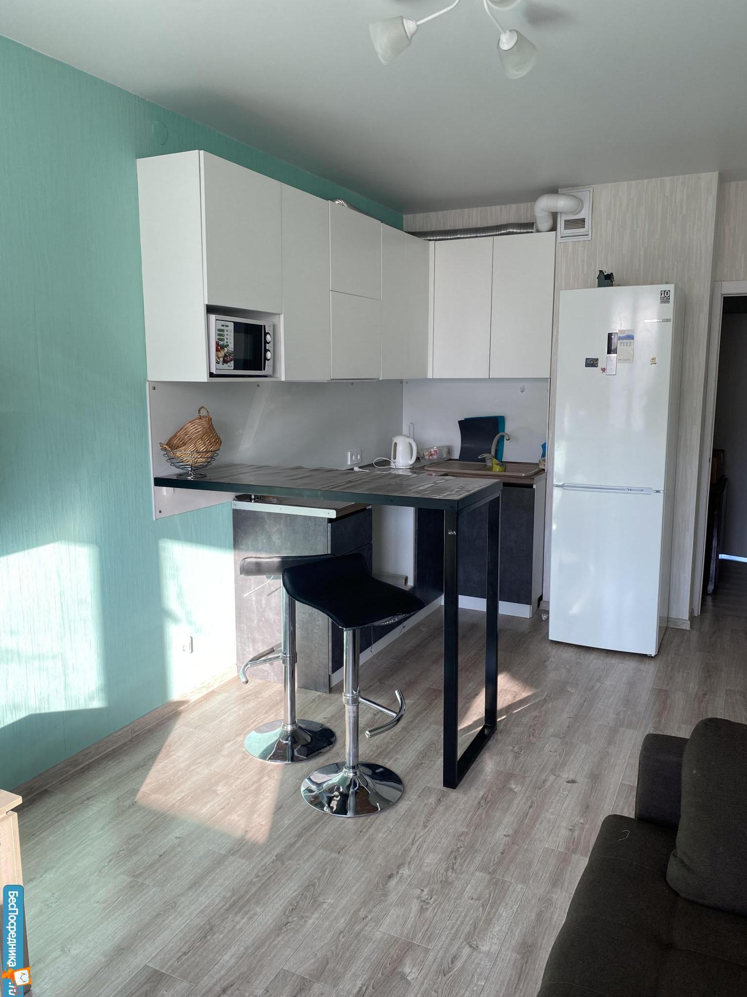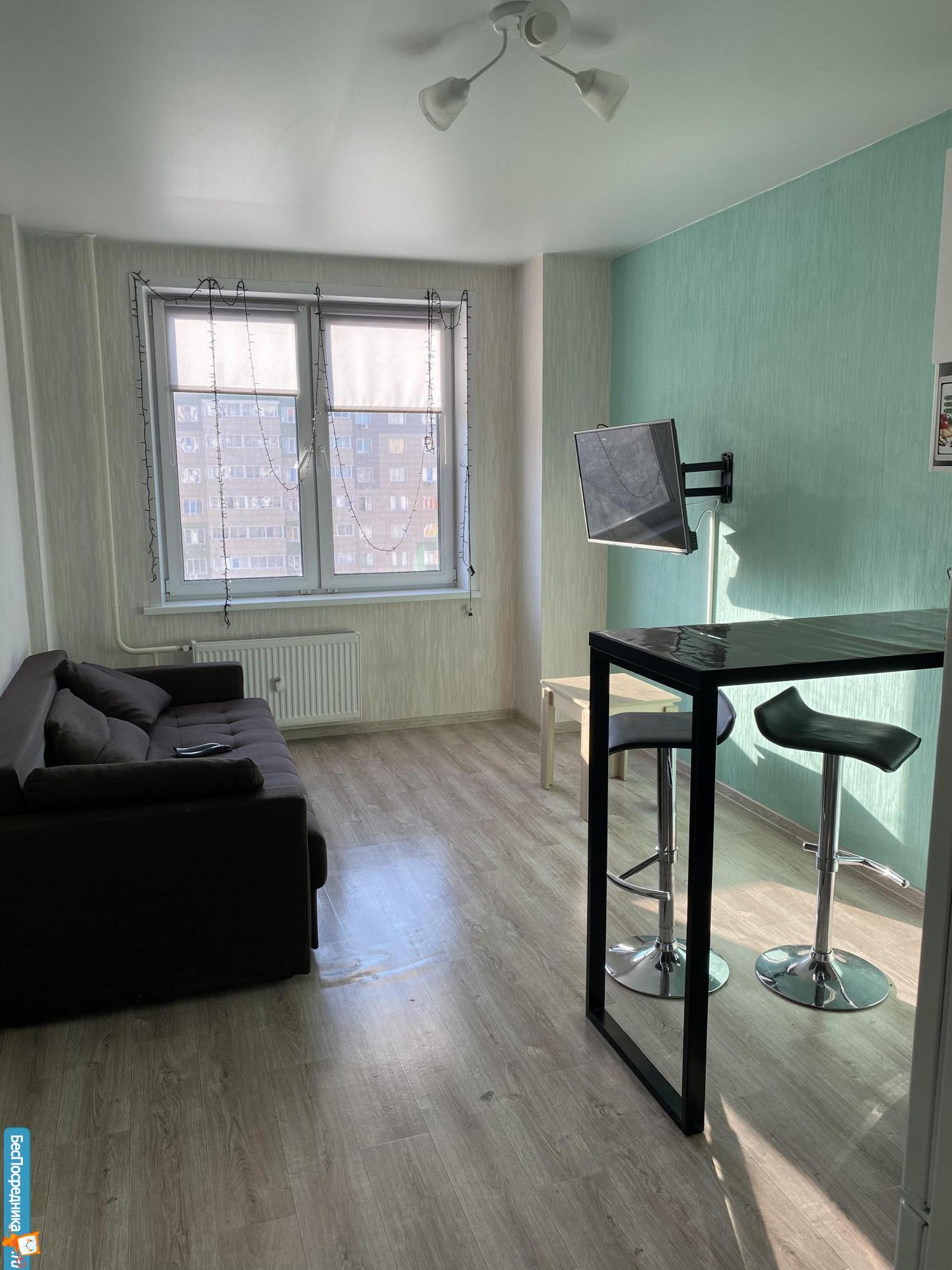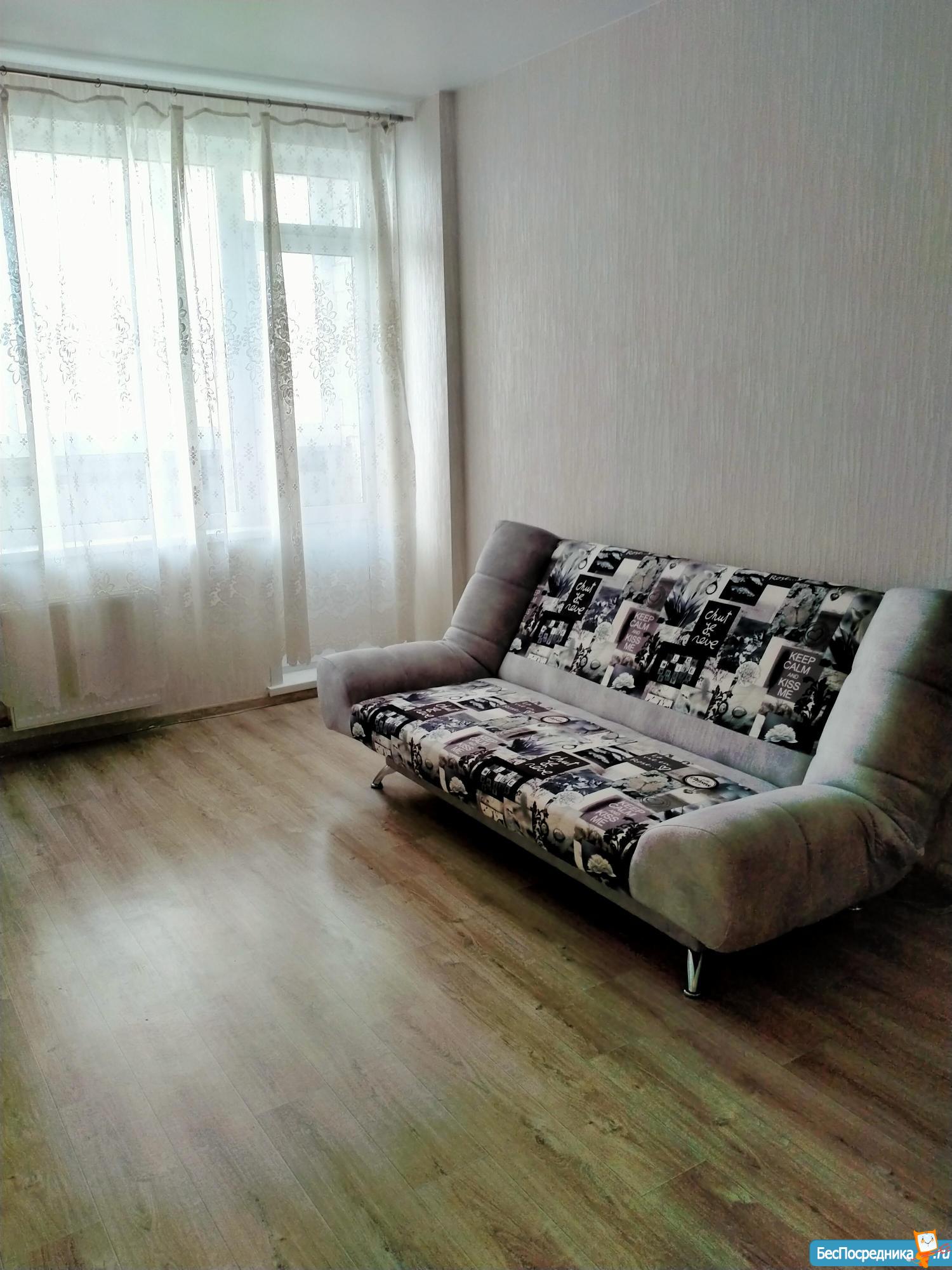 Однокомнатная квартира, в новом доме. В квартире, новый диван, стол, кухонный гарнитур, большой холодильник, микроволновка,стиральная машина.