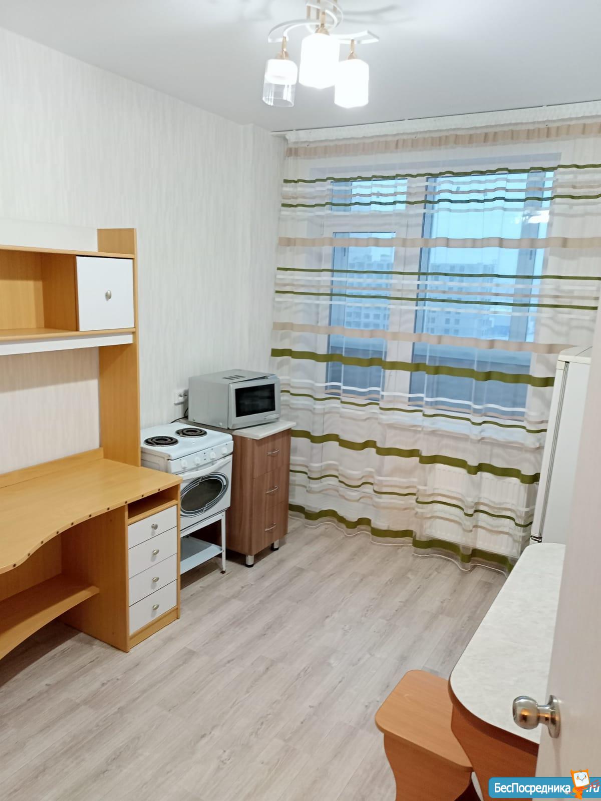 Жилой комплекс "Матрёшки", уютный новый район. Чистая, светлая квартира-студия (не для большой семьи!!!) Арендная плата 14000 + коммуналка полностью, интернет и тв. Вахтовиков и людей восточной национальности просьба не беспокоить. На длительный срок.