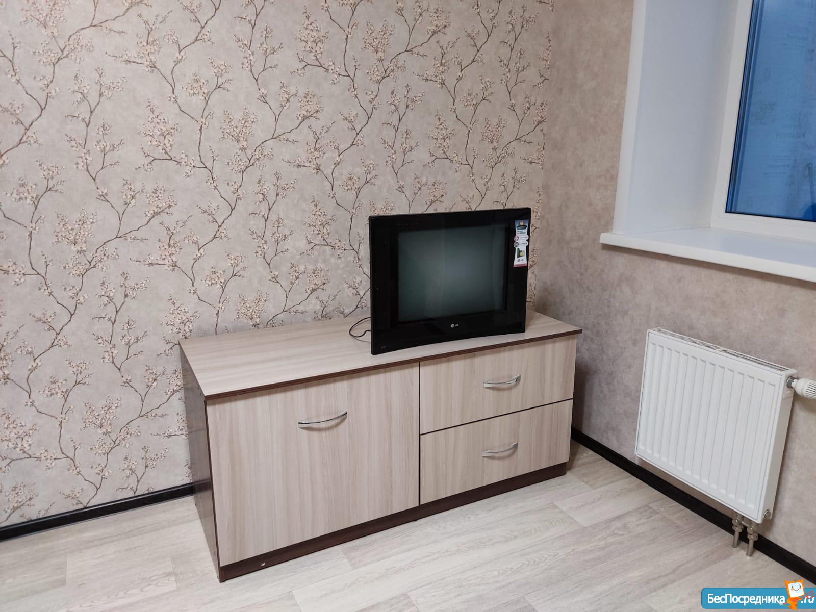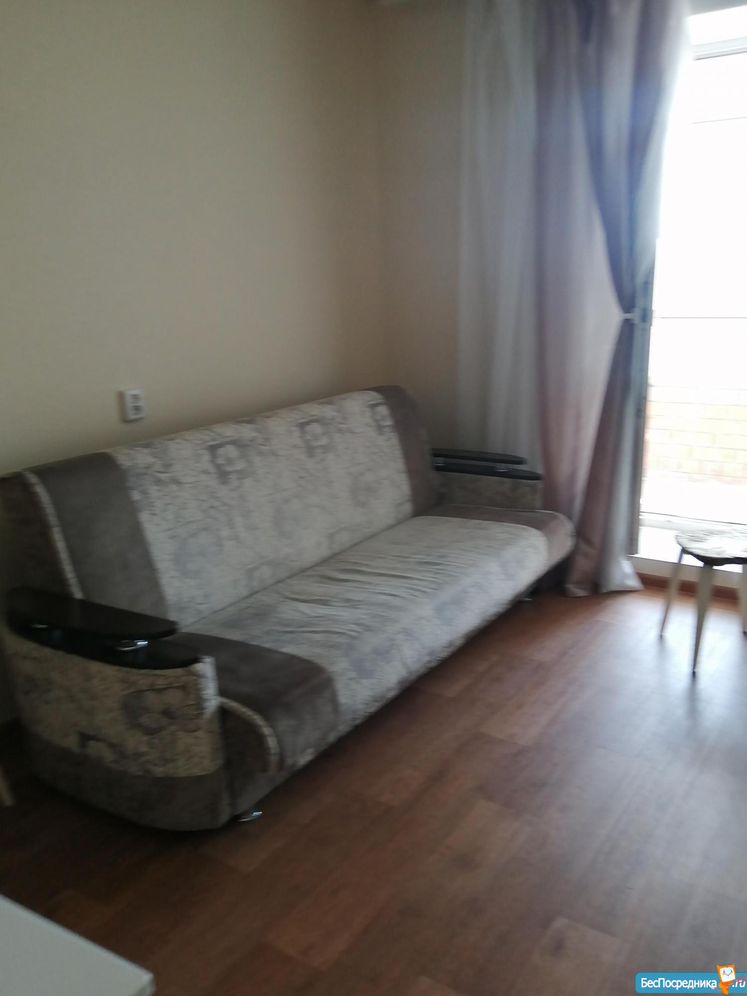 Новый диван с независимым пружинным блоком, новый холодильник, новая стиральная машина, чайник, микроволновка, индукционная плитка, небольшая сушка. Москитная сетка на окно в наличии.